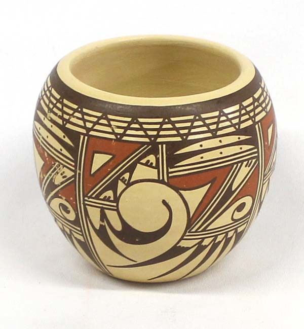 Native American Hopi Pottery Bowl by Jofern Silas, measures 4'' x 4'' and is signed on the bottom, ''JoFern Silas Puffer is Hopi Tewa and Laguna mixed heritage. She has been an active potter since 1990.''