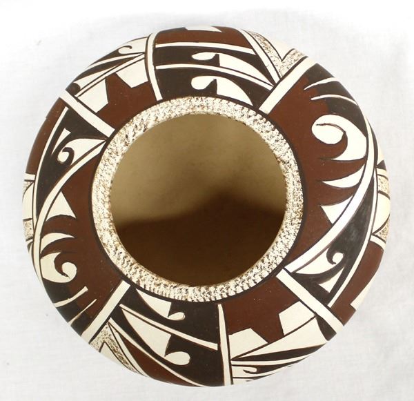 Native American Hopi White Ware Pottery Bowl by Loretta J. Navasie Laban (b. 1948), measures 4'' x 7'' and is signed on the bottom, FYI: ''Loretta Navasie, Hopi/Tewa, is a granddaughter of Paqua Naha (1st Frog Woman) and daughter of Joy Navasie (2nd and current Frog Woman). She produces pottery of the white-slipped variety, as does her mother. Her hallmark is the same frog used by her mother, with the addition of the letters LJN; now many carry just the Frog symbol.''