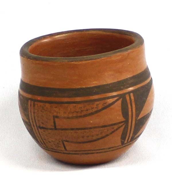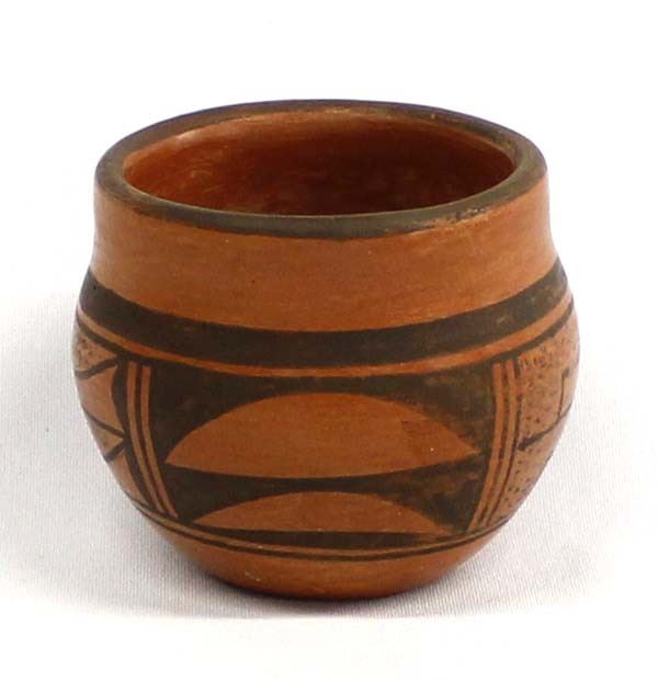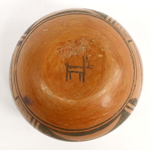 Vintage Native American Hopi Tewa Pottery Bowl by Zella Cheeda ''Antelope Woman'' (1901-1997), measures 3'' x 3.5'' and has antelope hallmark, nice thick walled bowl, FYI: ''Zella Cheeda was known as Antelope Woman or Antelope Girl and signed her pottery with the image of an antelope. She was Hopi from the First Mesa village Sichomovi and was an active potter from 1950 to 1980. She is represented in the Museum of Northern Arizona and the National Museum of the American Indian collections.''