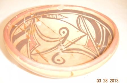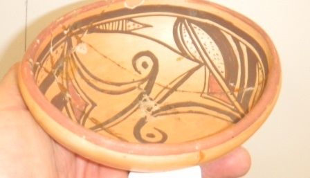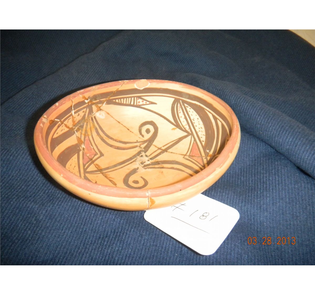 Pottery Bowl, Measuring 6x5x2 inches, Circa 1920. Condition has been broken and reattached. Shipping $18.00