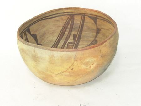 Mid/Late 1800s, Large rare Polacca polychrome dough bowl with four-way interior design. Very good condition, some gluing. 7" x 13-1/2"