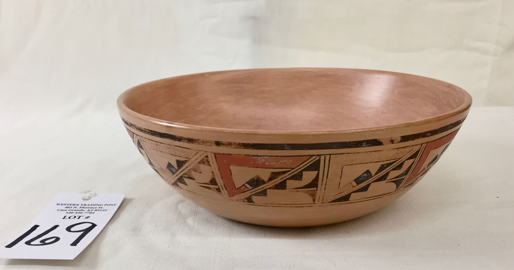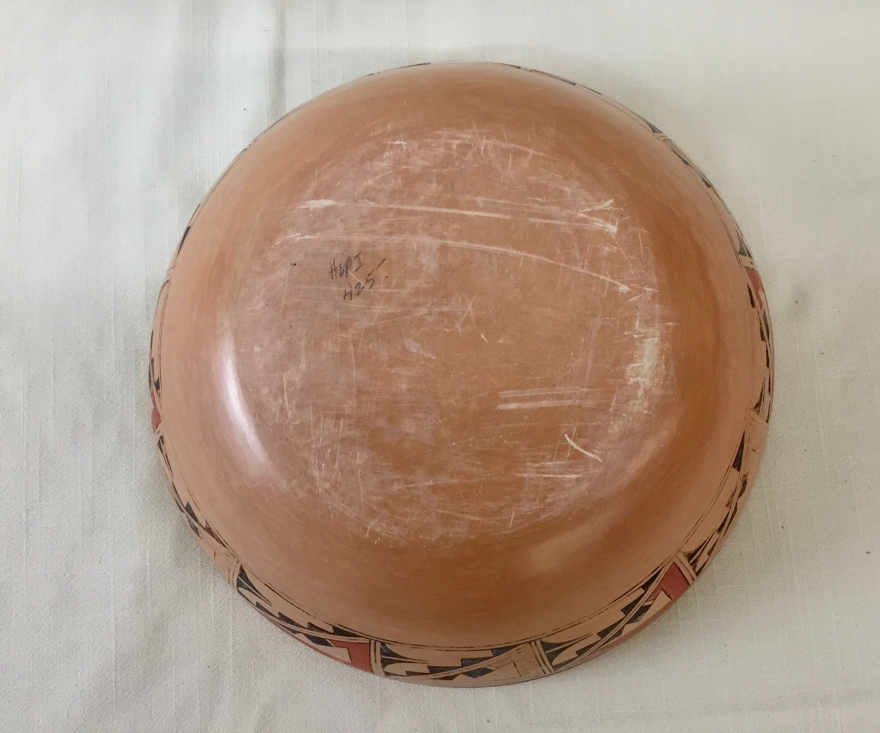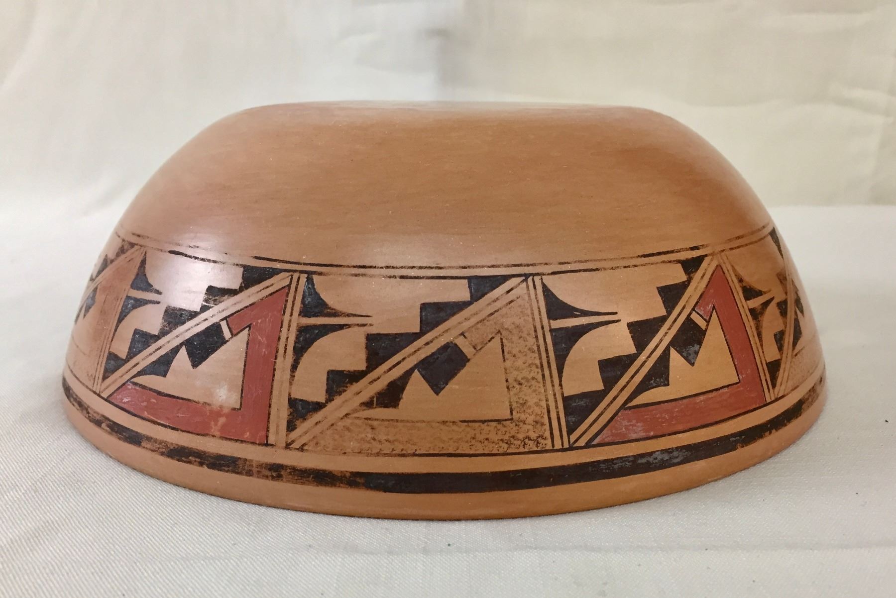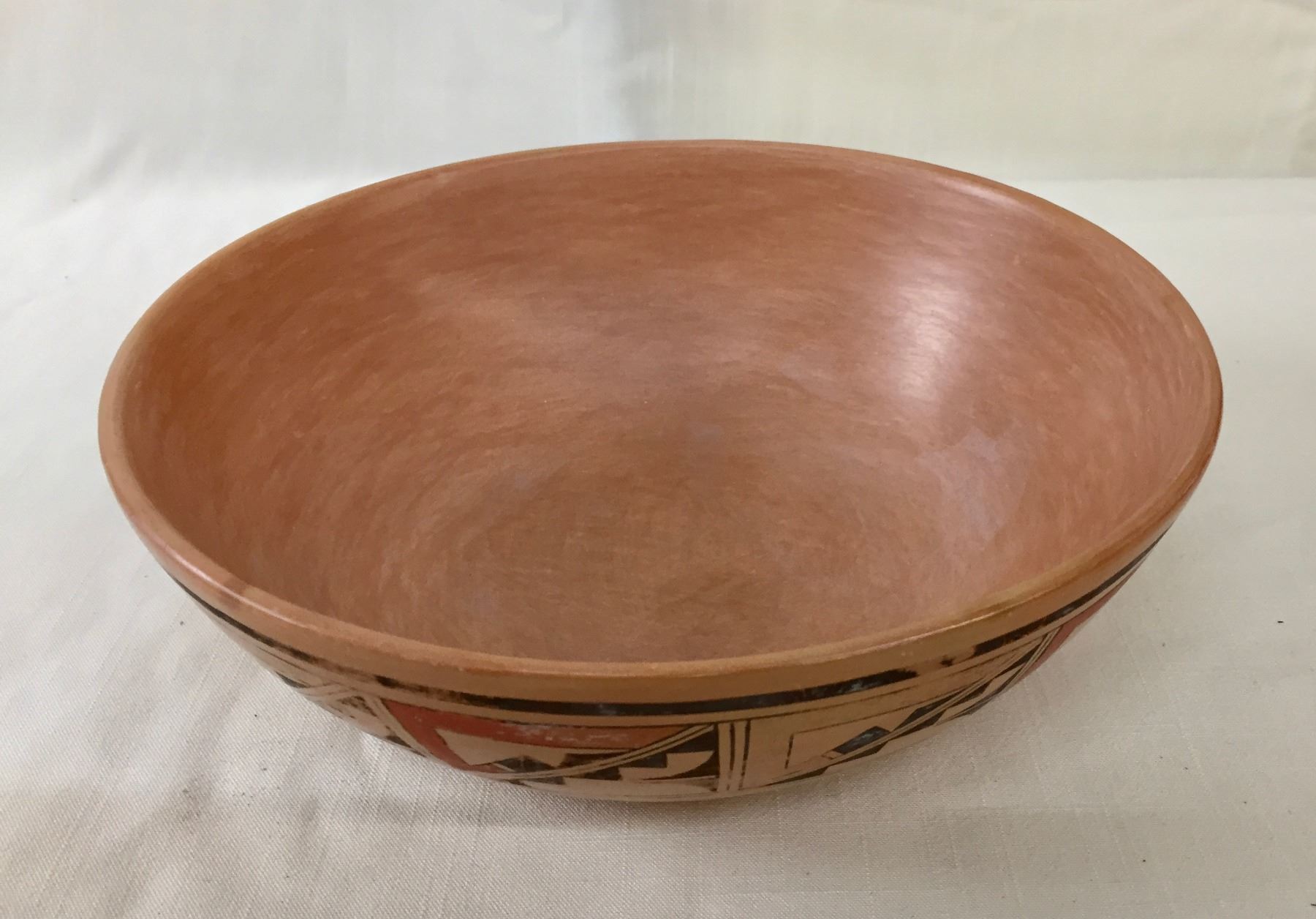 Description: Featured for sale in this lot is a Hopi pottery bowl with geometric hand painted designs. This is a handmade pot. Maker: Unknown Hopi potter. Approx. Age: Vintage. Size: 9-1/2”w x 3-1/8” deep. Condition: Good for its age, normal wear expected. Please look closely at the pictures - they are an important part of our description. Shipping: There will be a $10 handling / packaging fee for shipping this lot. The actual cost of postage will be added on top of that.