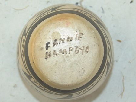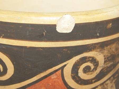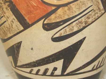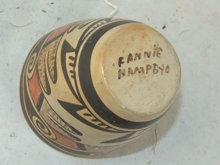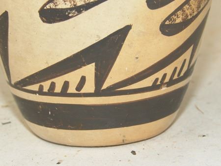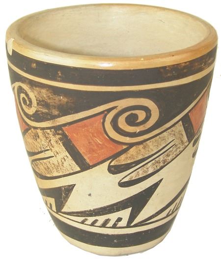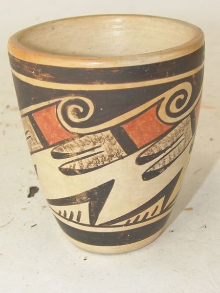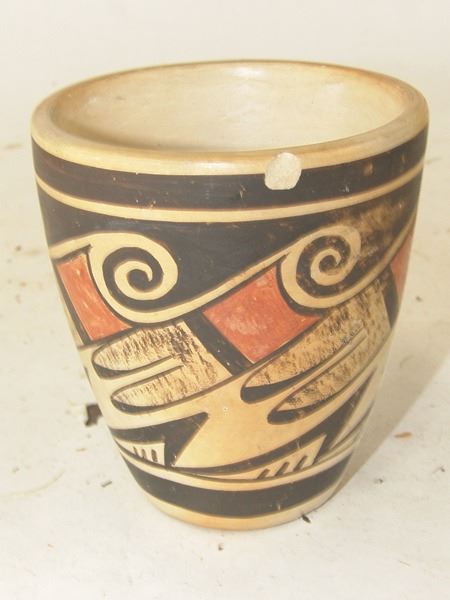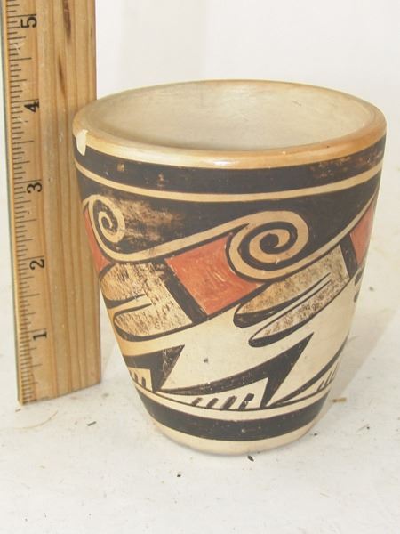 Early/Mid 1900s, Small polychrome flared vase with repeating avian motifs. Very good condition, but has some scuffs. 4" x 3-5/8"