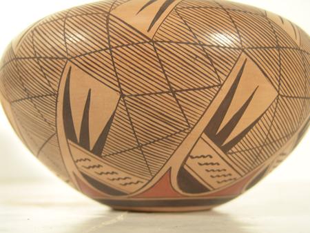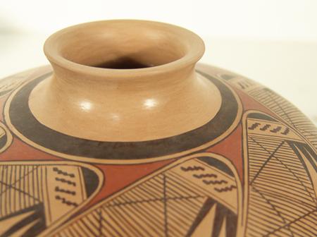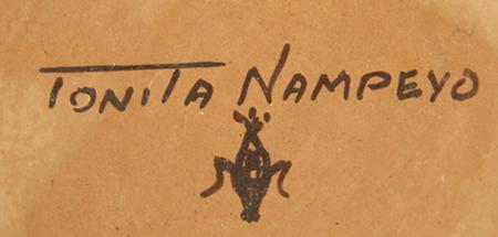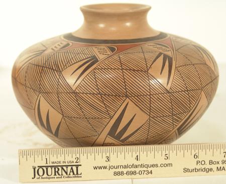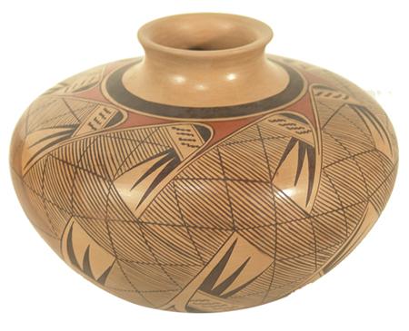 Fine wide shouldered olla with famous Nampeyo "migration" pattern design. Condition: excellent. 5-1/2" x 8"
