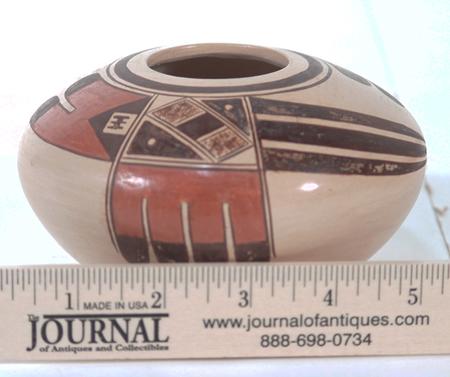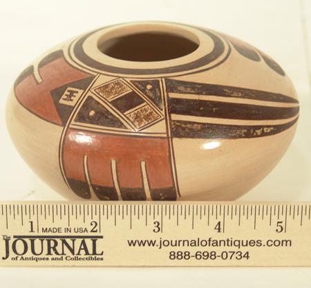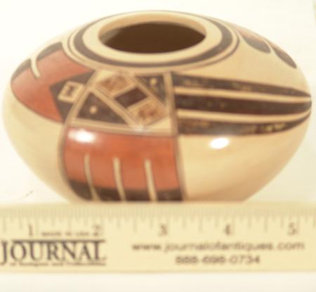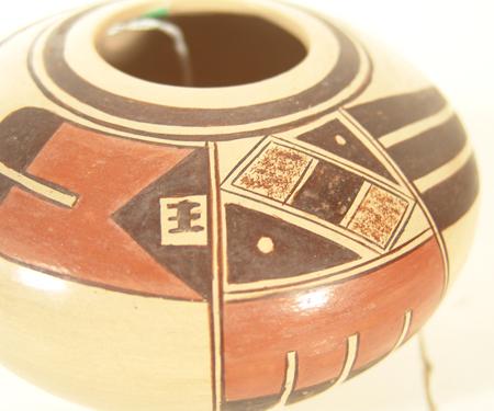 Beautiful polychrome seed jar with original early Nampeyo design. 3-1/2" x 5-1/2"