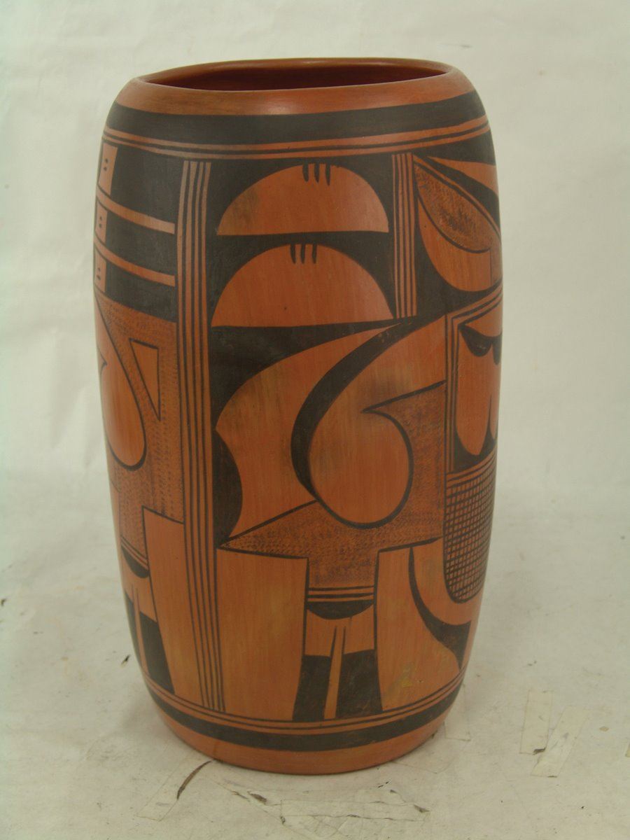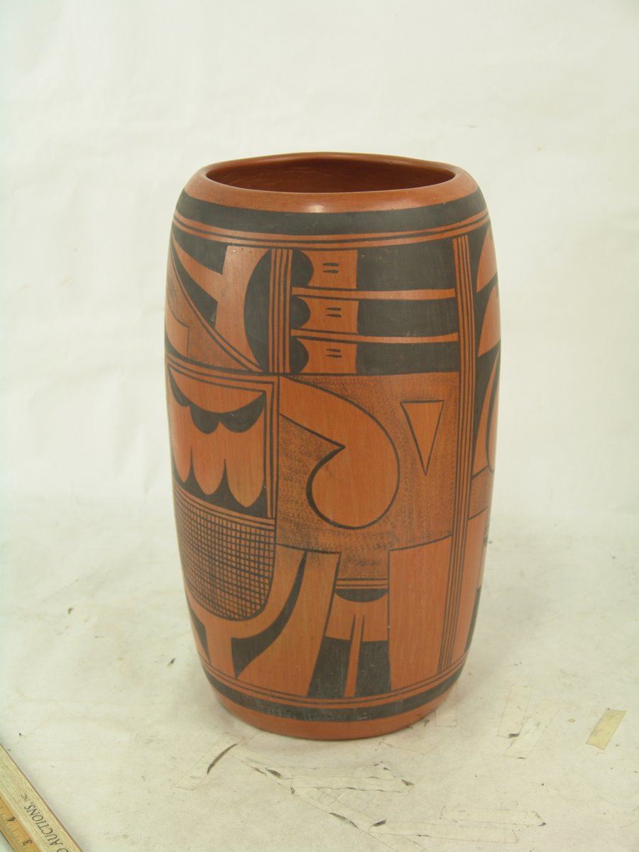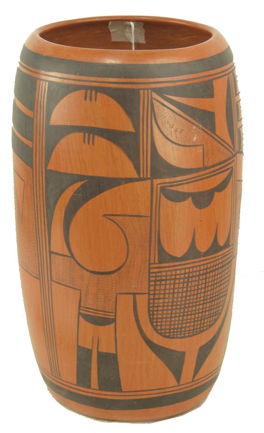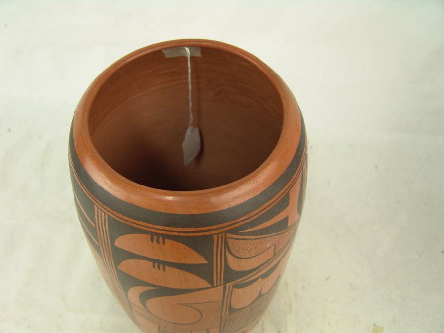 Large and impressive black-on-red vase with beautiful, traditional avian inspired motif, museum quality. Very good condition, minor scuffs.,Mid 1900s,13" x 7-1/4"