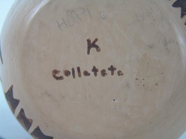 Circa 1970s, K. Collateta, Large polychrome parrot jar, hand thrown and hand painted; excellent condition. 7-1/2" x 8"