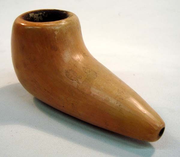 Native American Hopi Pottery Pipe. Smooth, nicely shaped pottery pipe which has been used. Measures 2.25''H x 4''L.