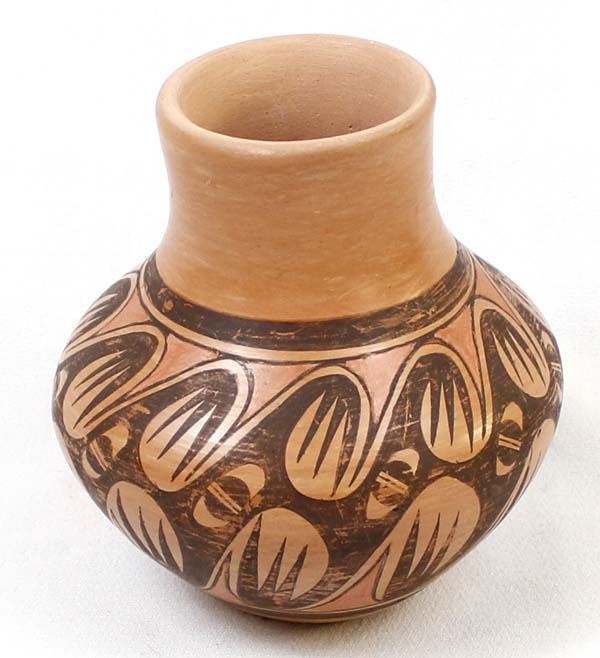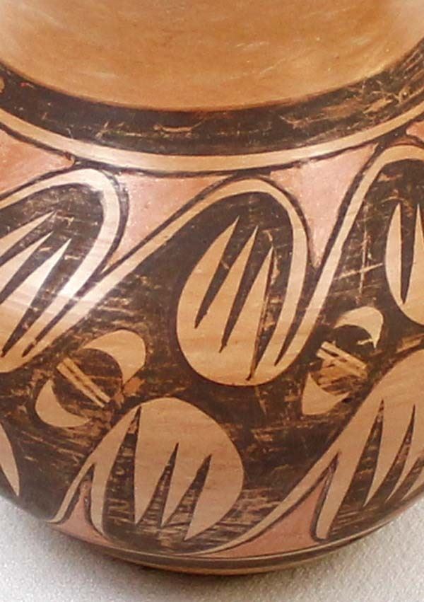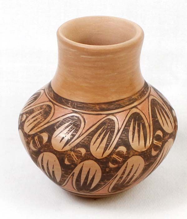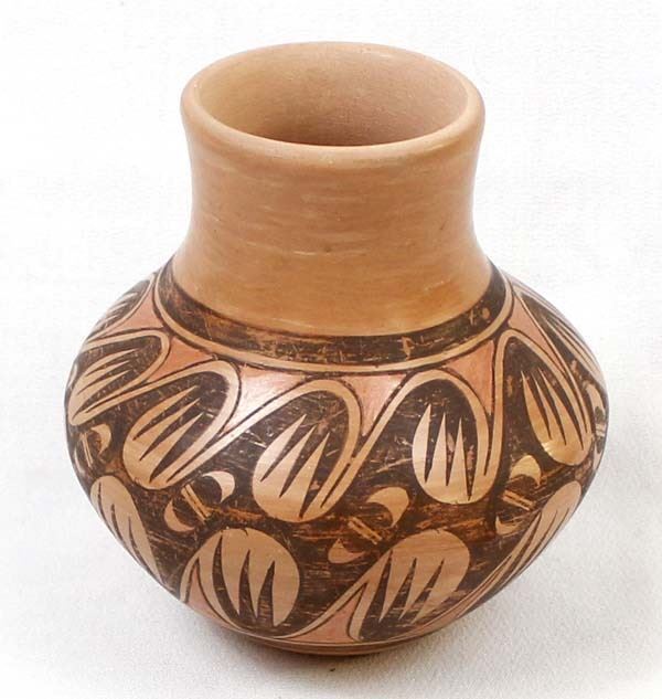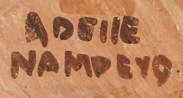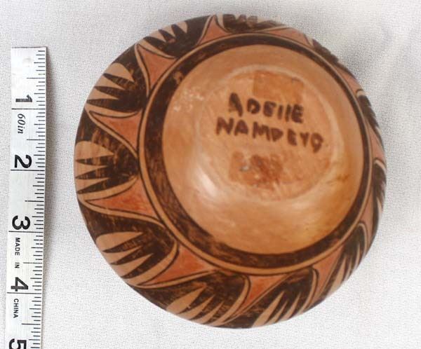 Native American Hopi Pottery Vase by Adelle Nampeyo, measures 4'' x 5'' and is signed on the bottom, FYI: ''Adelle Nampeyo is a member of the famous Nampeyo family. Adelle was born into the Hopi-Tewa Nation in 1959. She has been an active potter since 1970. She learned the art of pottery making from her mother (Elva Tewagunal, 1926-1985) and grandmother (Fannie Polacca, 1900-1987). Adelle specializes in the handmade traditional ancient Sikyatki polychrome pottery for which her family is famous. She enjoys making seed pots most of all and her favorite design is the fine line and eagle tail.''