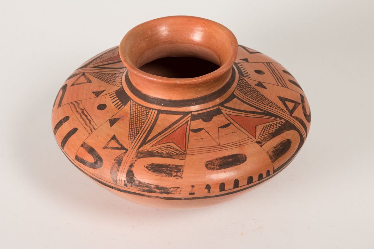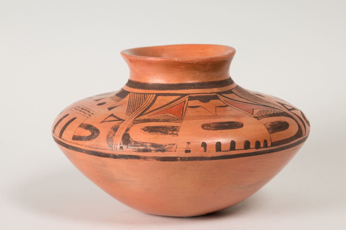Hopi Pueblo Pot. 5" x 8 ½" with polychrome designs. Circa 1950s.