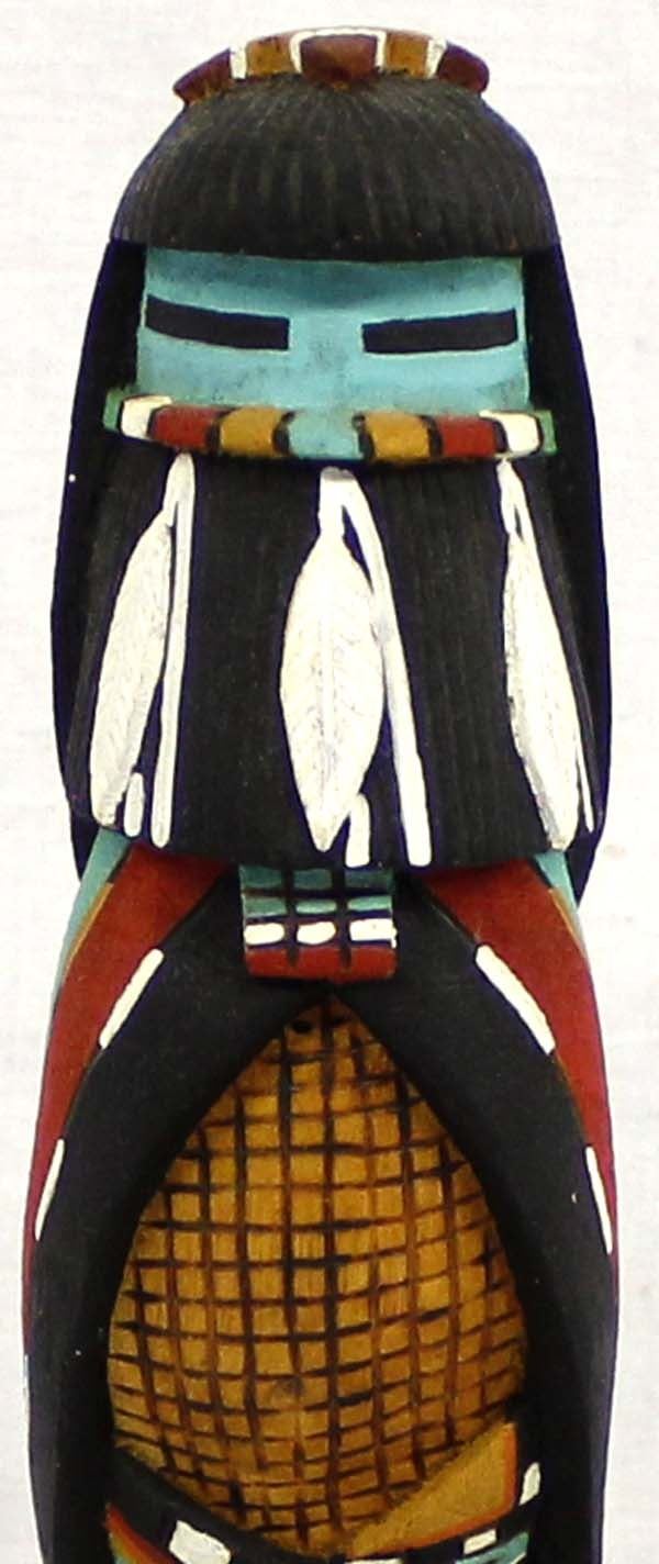 2004 Native American Zuni Rain Dancer Kachina Sculpture by Dwight Mahooty, measures 2'' x 7'' x 2'', beautifully carved, wood burned, and hand painted, gorgeous vibrant colors, well executed