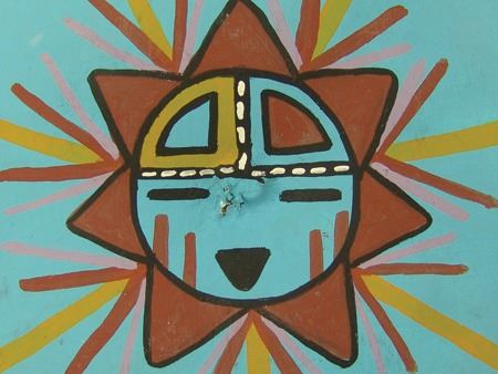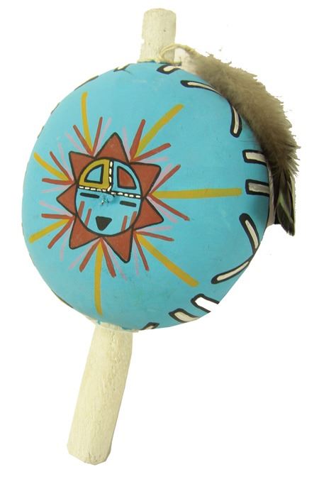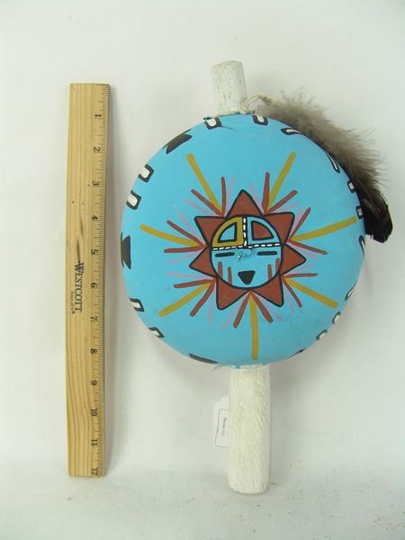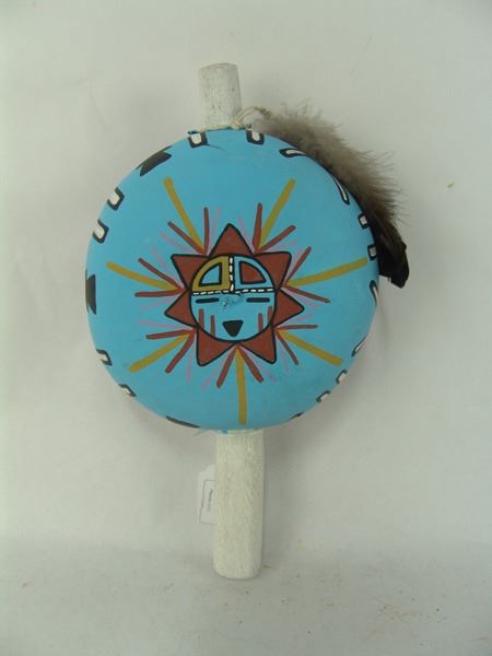 Late 1900s, Traditional hand carved and painted gourd and carved cottonwood kachina dancer with different designs on both sides. Very good condition. 12" x 7" x 3-1/2"