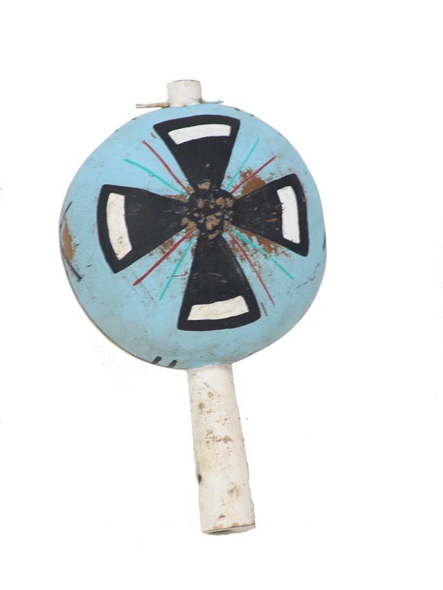 Circa 1940, Old hand painted gourd dance rattle. 10-1/2" x 6-1/2"