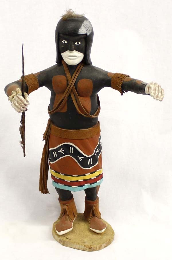 Native American Hopi Snake Dancer Kachina by Leo Lacapa, Jr., measures 10'' x 16'' x 6'' and is signed on the bottom, FYI: ''Leo LaCapa, Jr. is an elder in the village of Polacca on First Mesa in Arizona. He is Soyal Mongwi and Leader of First Mesa Corn/Water Clan.''