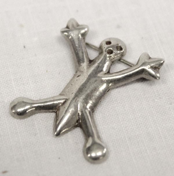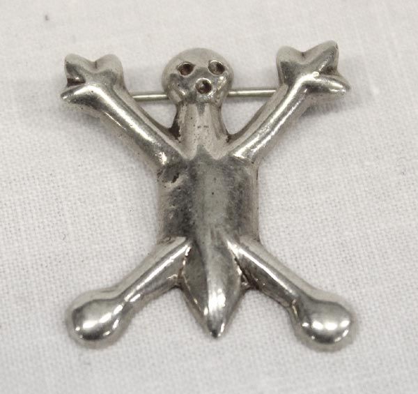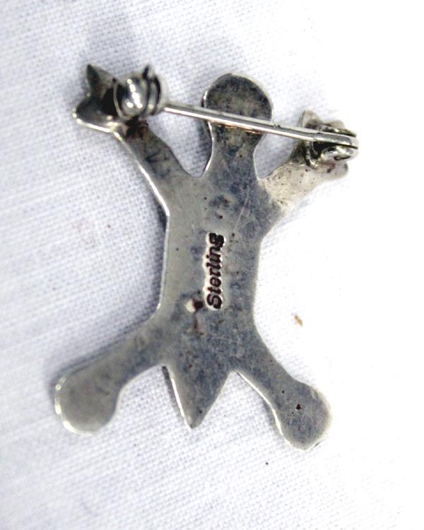 Hopi Sterling Silver Sand Cast Stick Man Pin, measures approx. 1 x 1''. Hallmarded sterling on the back of the pin