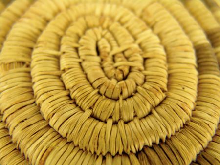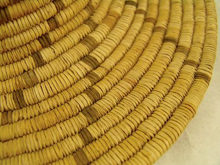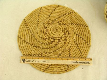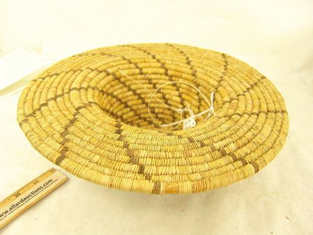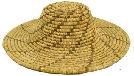 Mid 1900s, Unusual coiled 2nd Mesa style hat with simple radiating stepped design. Good condition, minor stitch loss/damage. Ex. Herb Puffer Collection. 3" x 13"