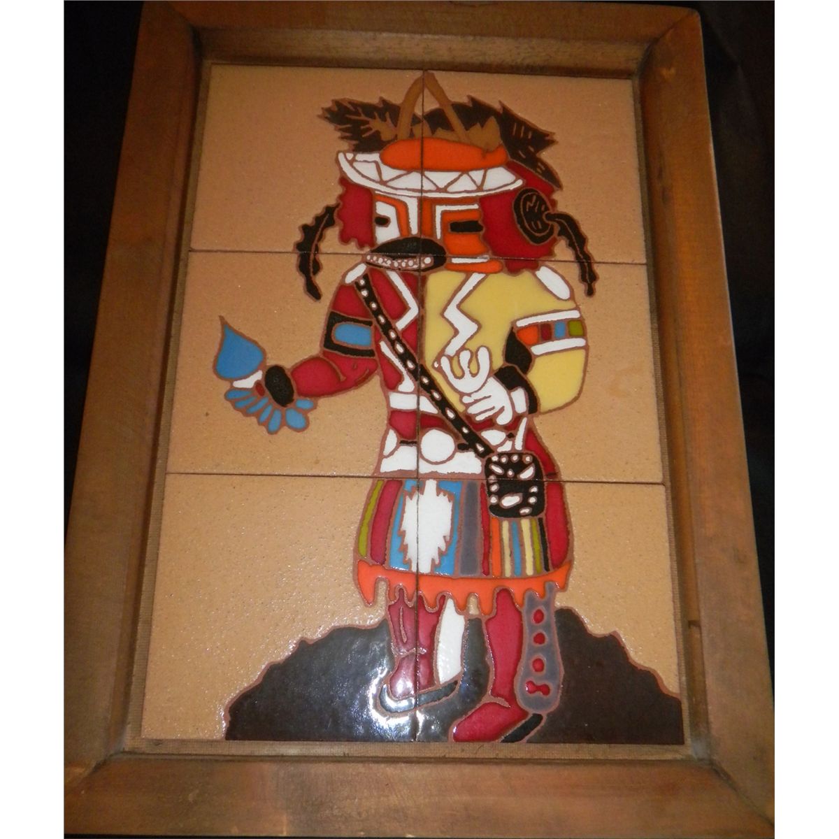 Hopi Tile Kachina Picture 18"x 12" without frame -Hand painted by Terrisia of Santa Fe in 1978- Shipping $25.00