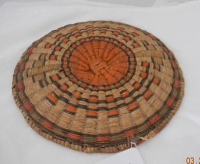 Hopi Wicker Basket, Circa 1940, Measures 10x1 inch, minor whipping loss. Shipping $20.00