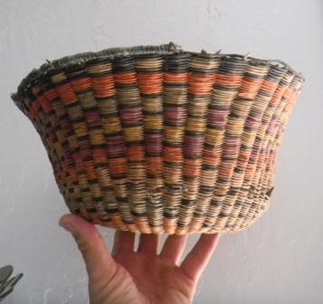 Colorful Hopi Wicker Basket, measuring 13 x 5 inches, Circa 1920, Condition is very poor, some spliting and approximatley 1/2 rim is missing Shipping $18.00