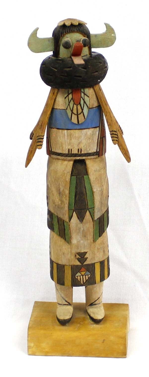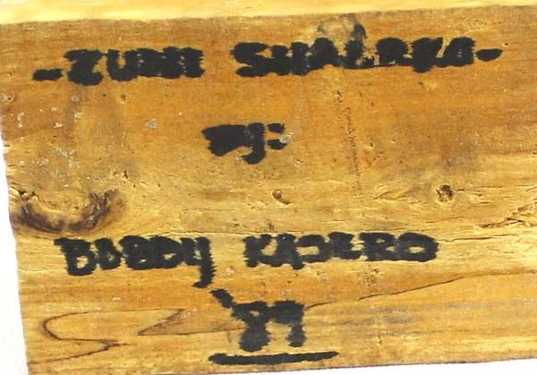 1989 Native American Hopi ''Zuni Shalako'' Kachina by Robert ''Bobby'' Kasero, measures 4'' x 14'', beautifully carved, hand painted, and wood burned, signed on the bottom, is missing wood feathers on head