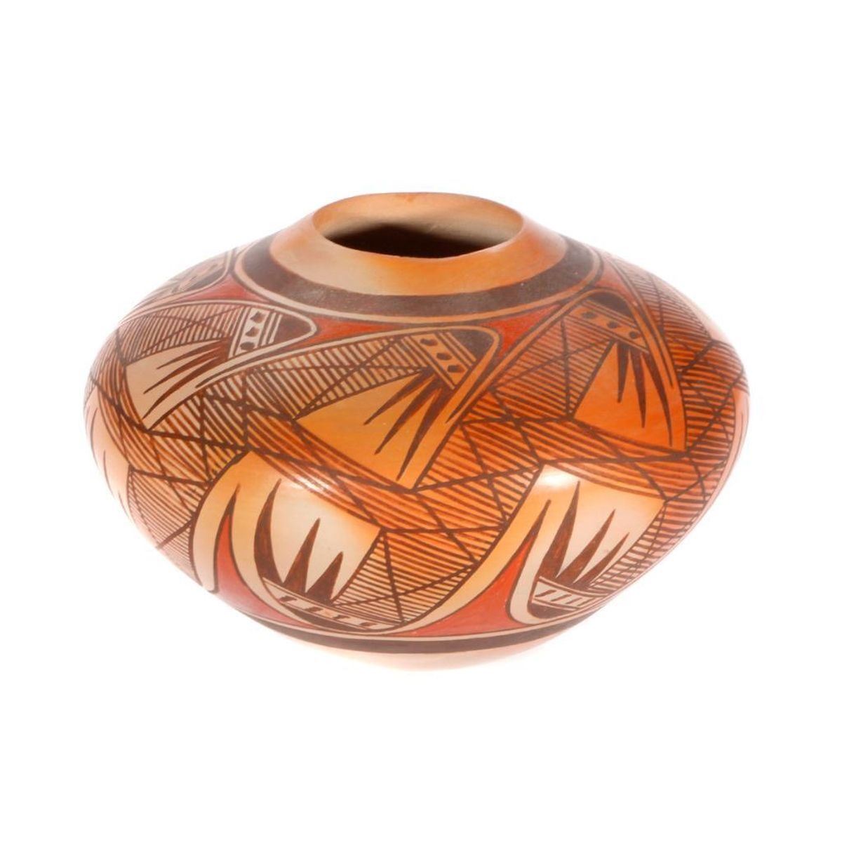 Hopi polychrome jar signed Elton Nampeyo. Size: 3 1/2" x 5 1/2"