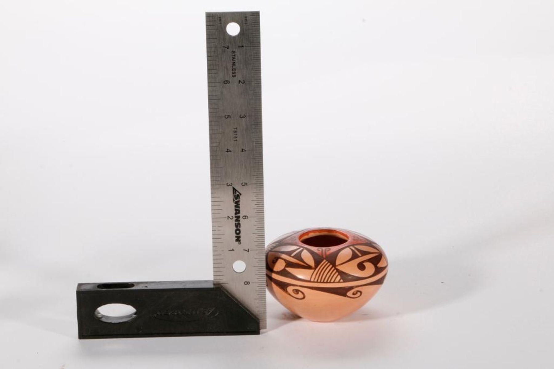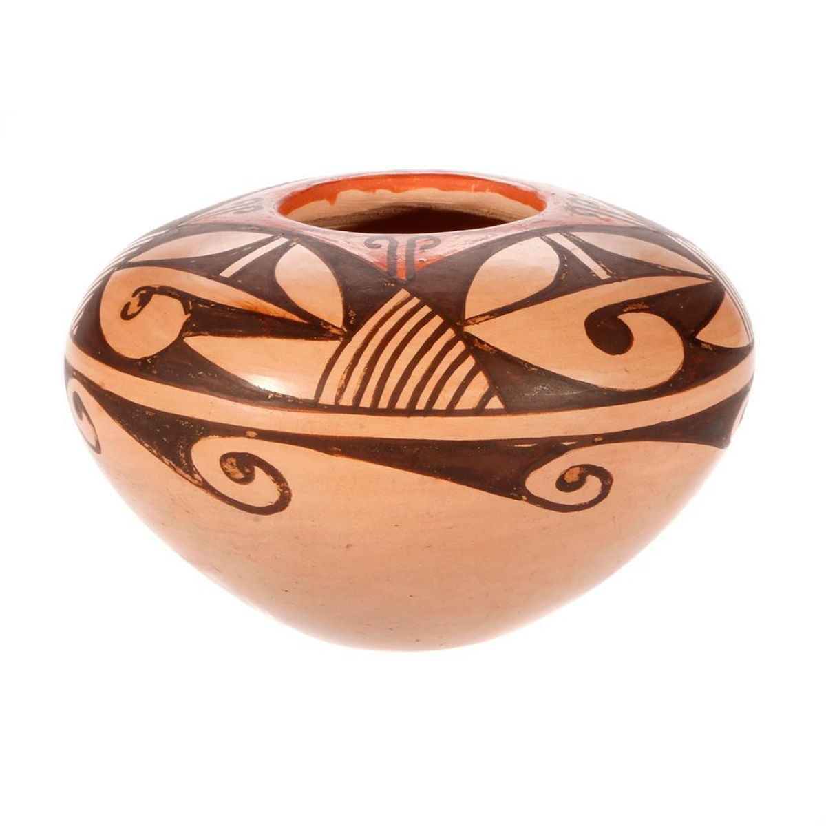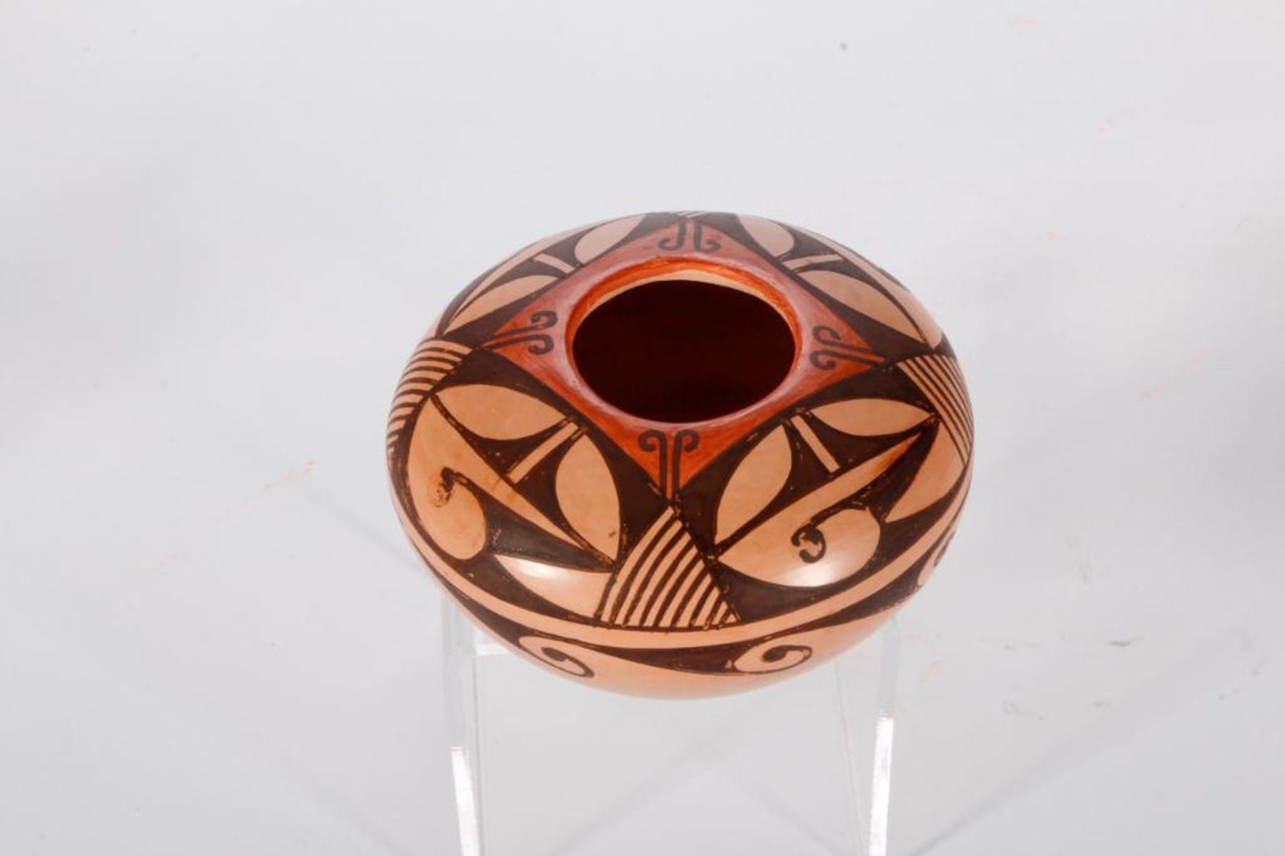 Hopi jar (2 1/4" x 3 7/8") by Verla Dewakuku; bought at potter's house on 151 Mesa Tewa Village