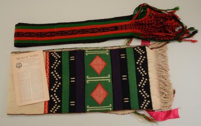Hopi kilt and dance sash with museum notes collected in 1938. Est.: $175-$350.