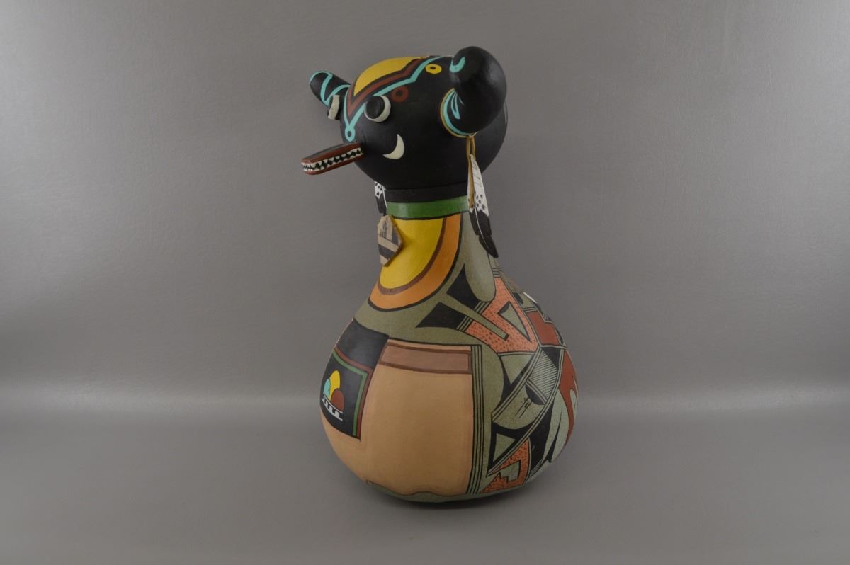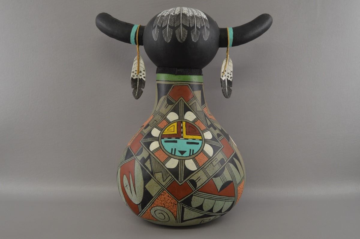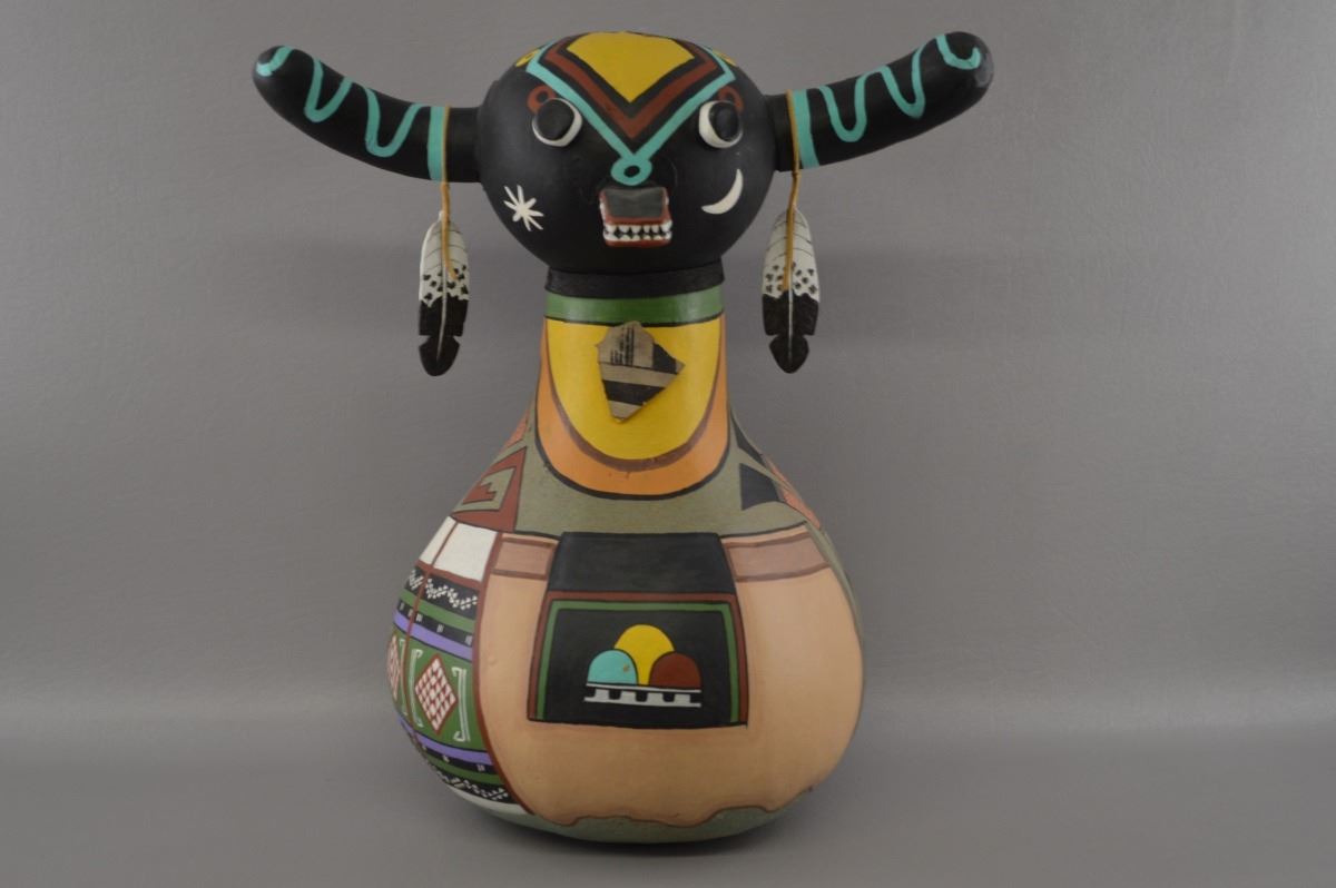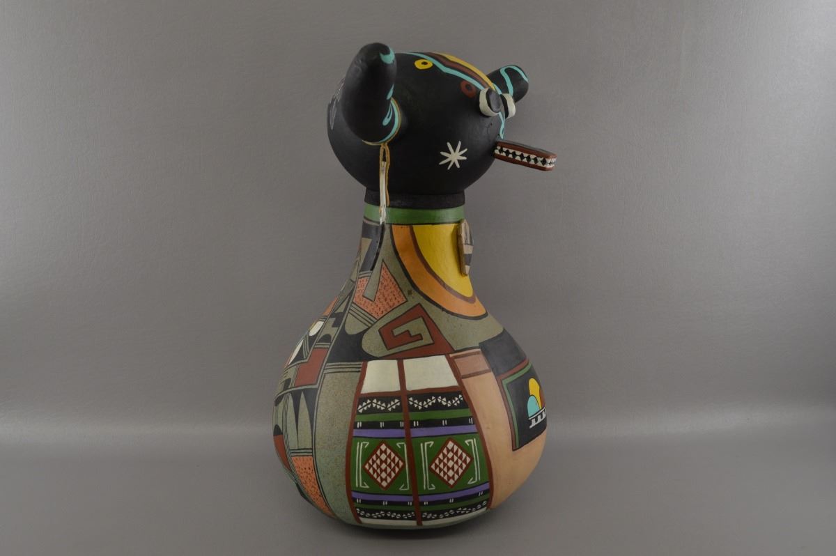 2009 hand painted geometric painted design kachina effigy signed F Poolheco 14" x16"