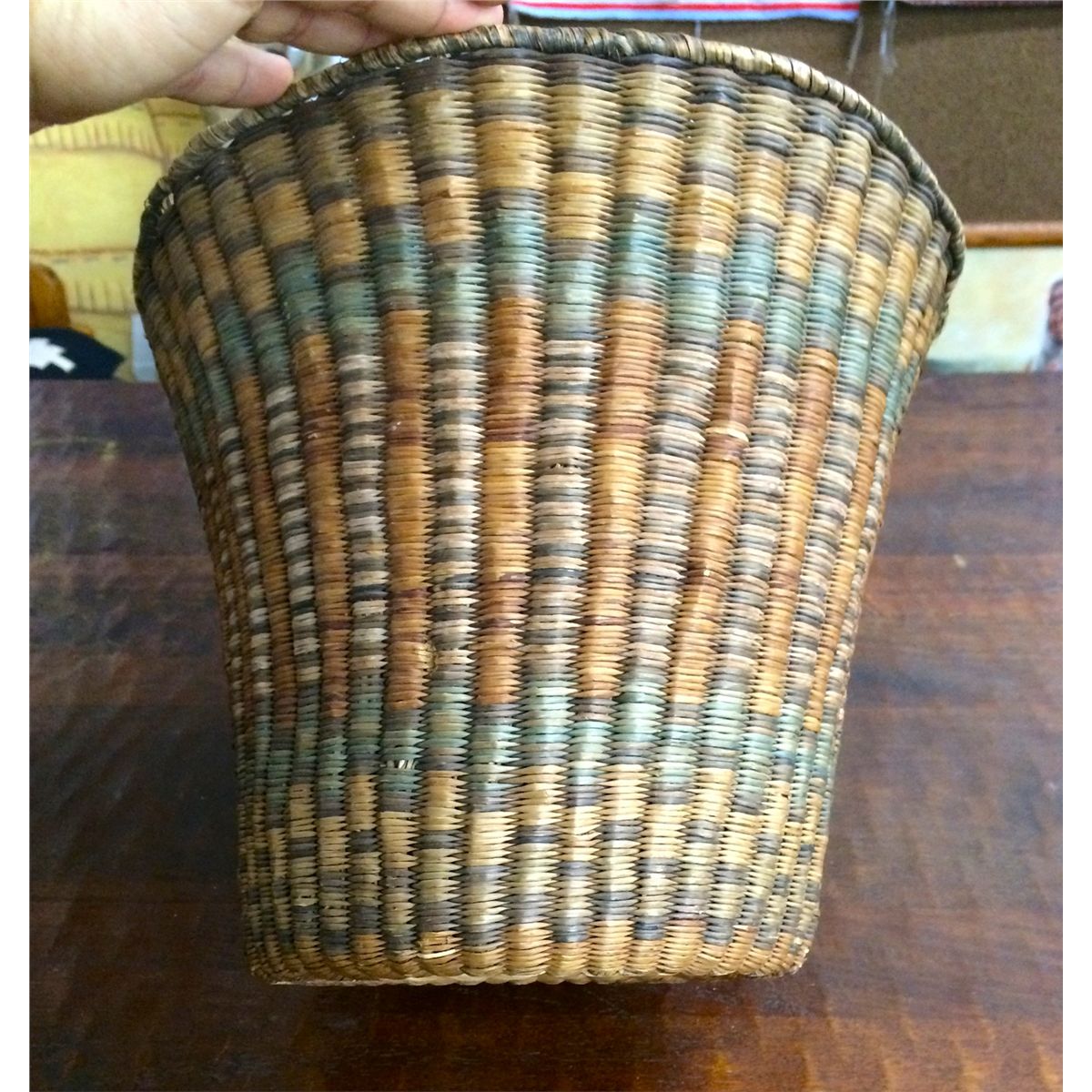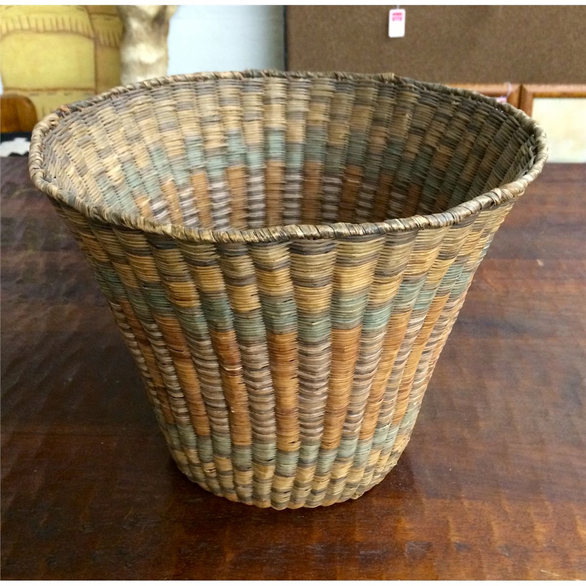 This great Hopi, 3rd Mesa basket is what is known as a peach basket. It measures approximately 10” tall by 12 ¼” wide.