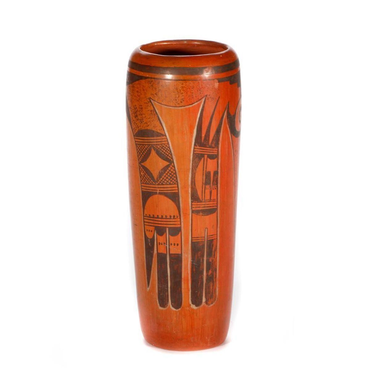 Hopi polychrome cylinder jar c. 1930s. Size: 11" x 4"