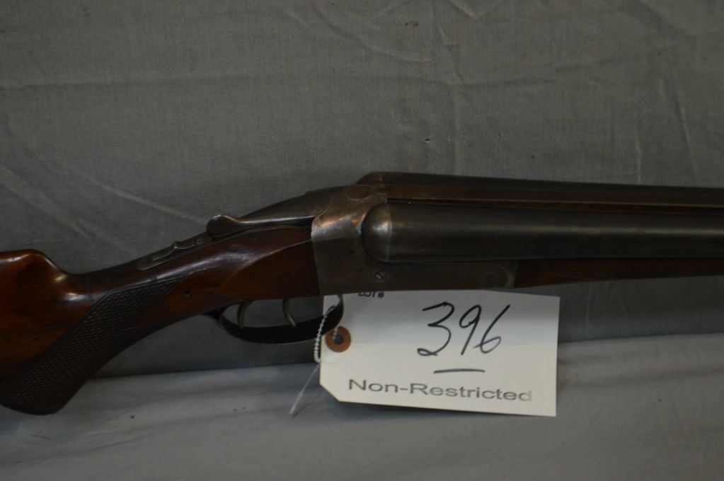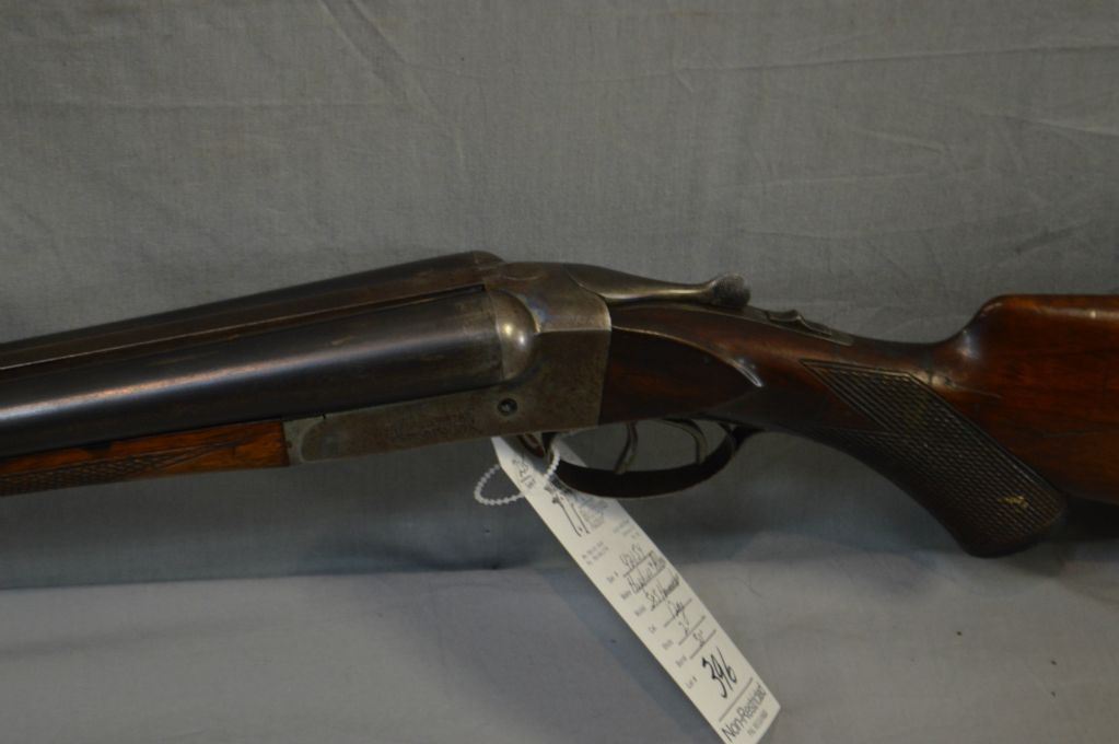 Hopkins & Allen Arms Co. Model Side By Side Hammerless .12 Ga Break Action Shotgun w/ 30" bbls [ fading blue finish, fading case colored receiver, good checkered forend, cracked butt stock, non original butt plate ] Ser # 42154