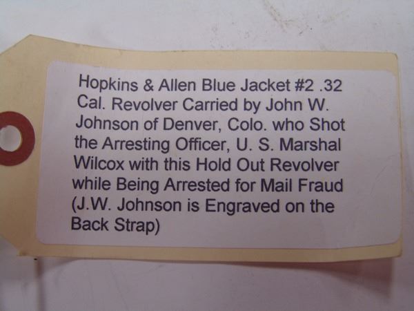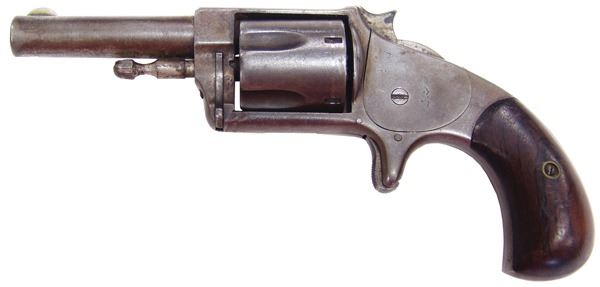 Late 1800s 7" Early, .32 cal., five-shot, "Blue Jacket No. 2" pocket pistol with wooden grips, trimmed hammer, and (quite worn) nickel finish. Fair condition. No S/N.