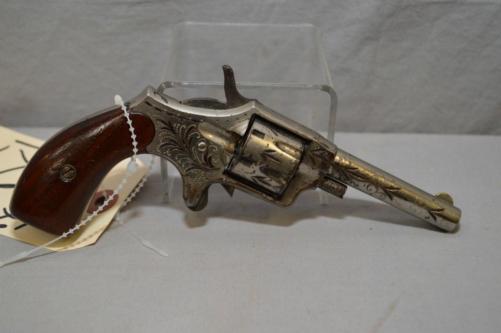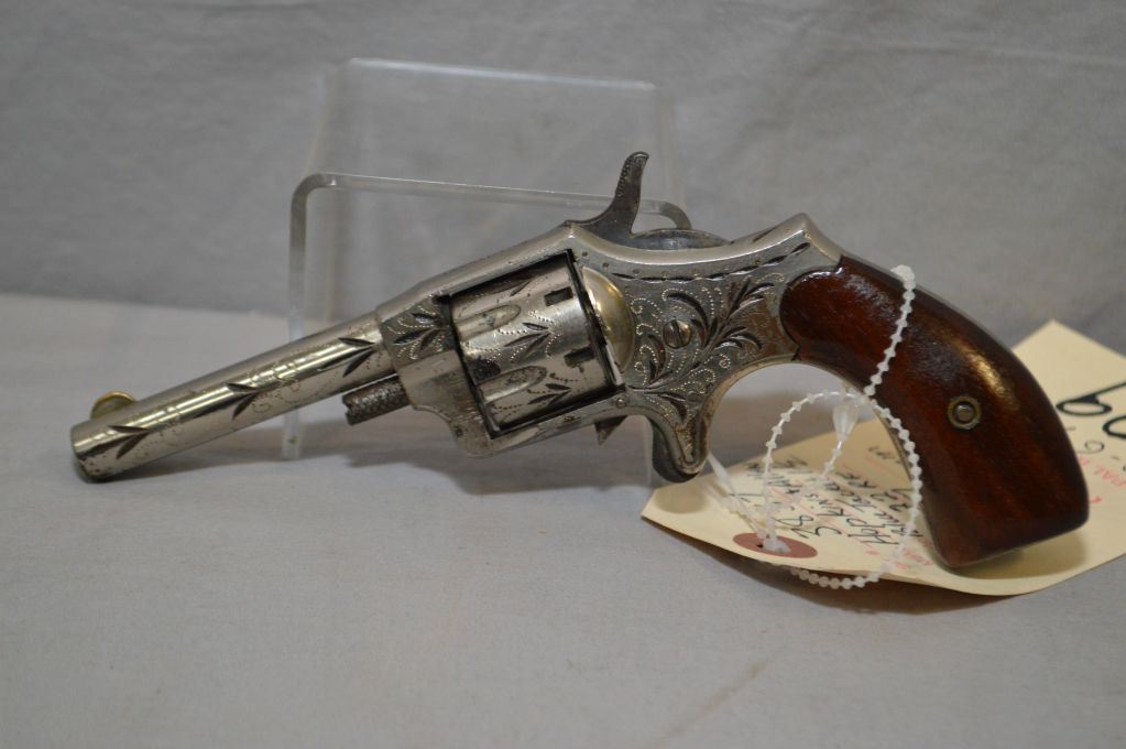 Hopkins & Allen Model Blue Jacket 1 1/2 .22 Rimfire Cal 7 Shot Revolver w/ 70 mm bbl [ engraved nickel finish, spur trigger, walnut grips, Manufactured 1875 - 1890, semi fluted cylinder ] Ser # 3837 12-6 Prohib EXPECT DELAYS IN TRANSFERS Cert # 6014691