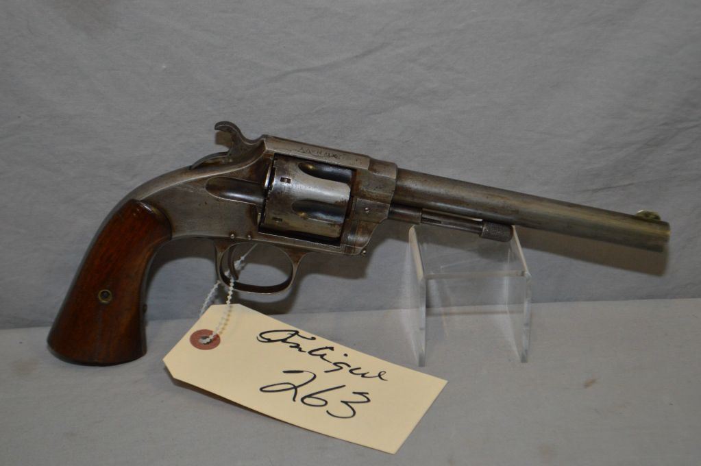 Hopkins & Allen Model XL Navy .38 Rimfire Cal 6 Shot Revolver w/ 6" bbl [ blued finish faded to grey, walnut grips, barrel marked " Hopkins & Allen M'f'g Co. Pat. Mar.28.71 Apr.27.75" ] Ser # 899 ANTIQUE NO PAL REQ