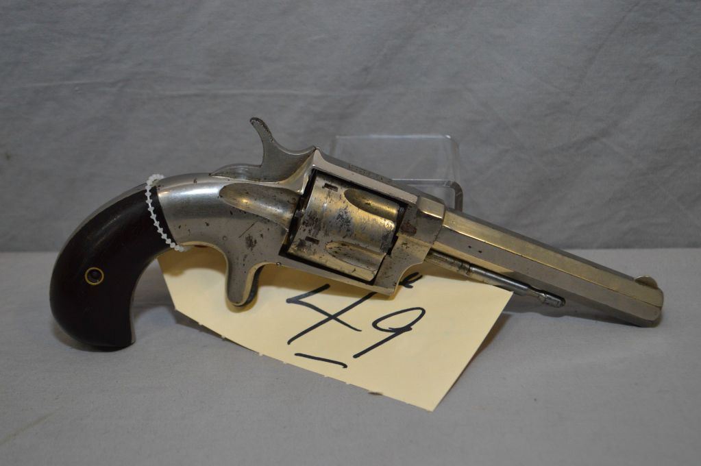 Hopkins & Allen Model XL No. 4 .38 Rimfire Cal 5 Shot Revolver w/4" octagon bbl [ nickel finish starting to flake more on cylinder, spur trigger, rosewood bird's head grips, Patent Date March 28,1875 ] Ser # 1628A ANTIQUE NO PAL REQ