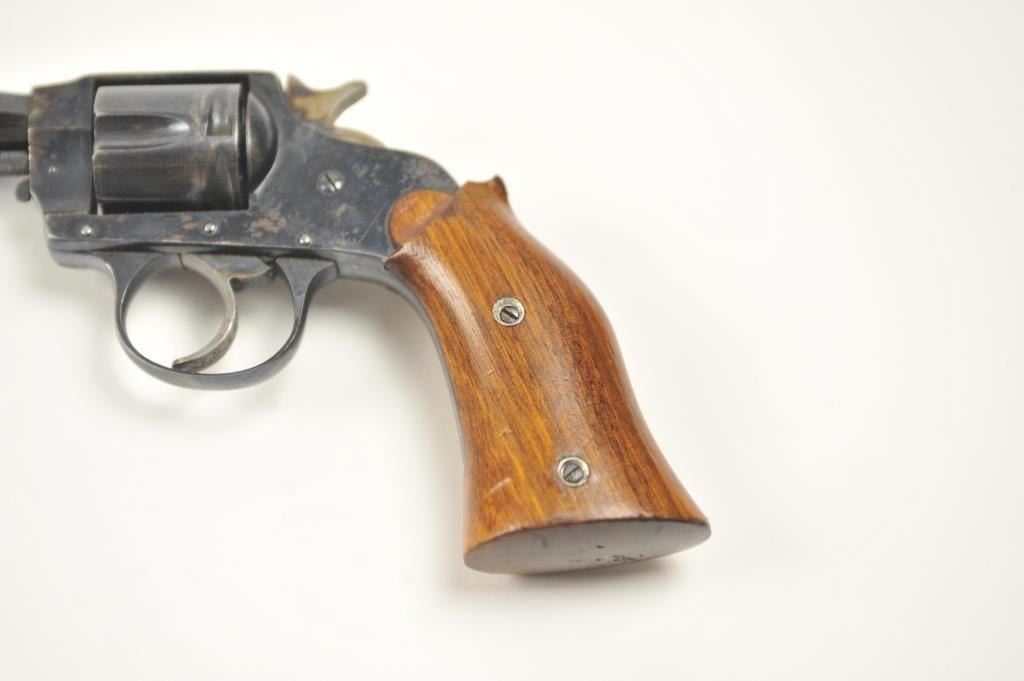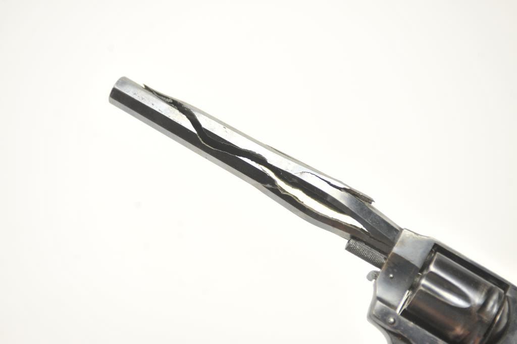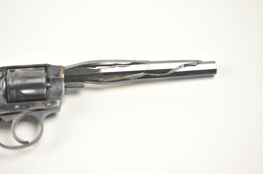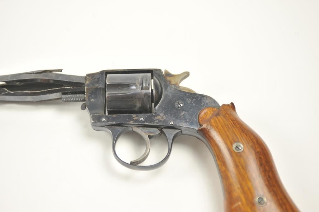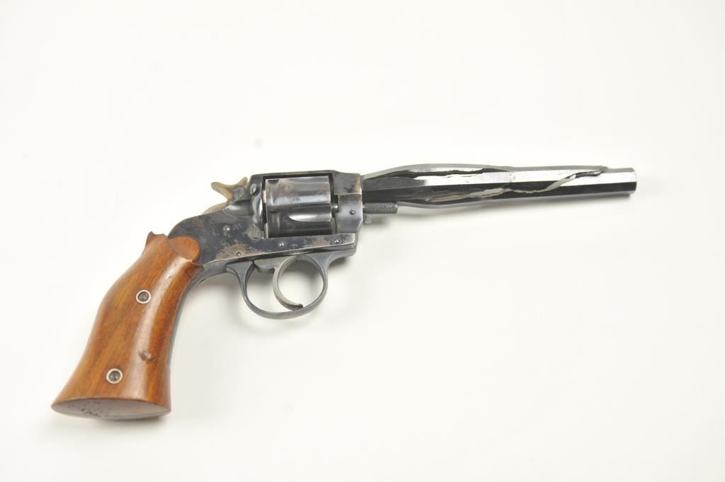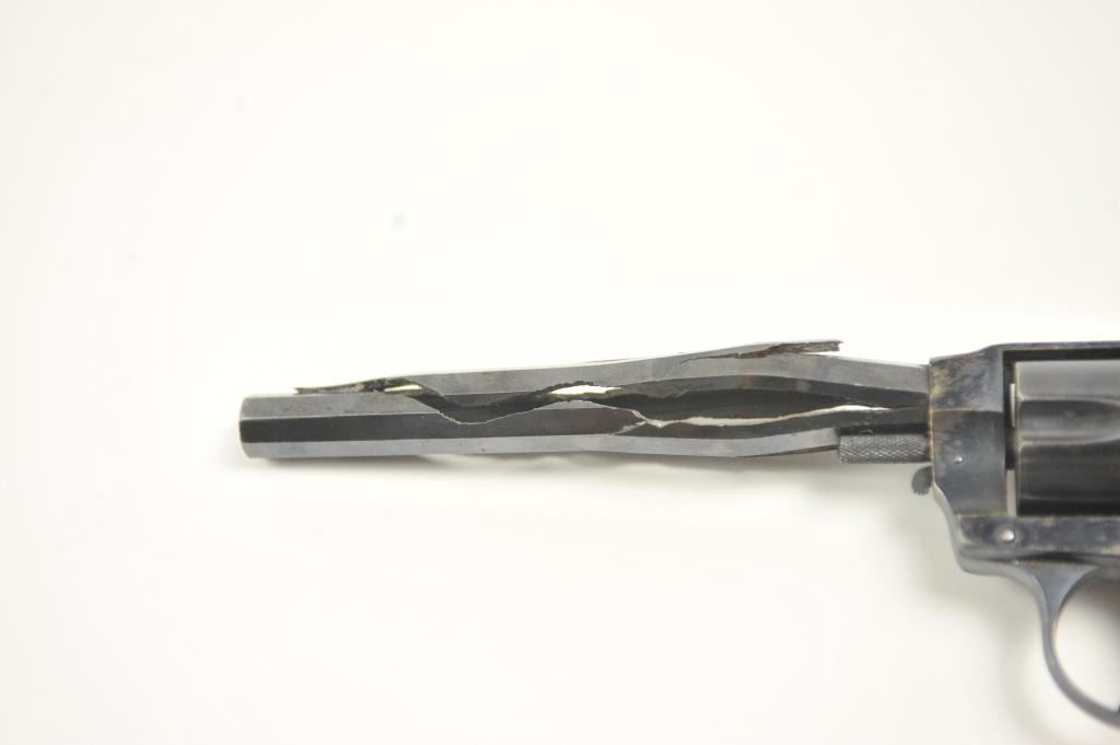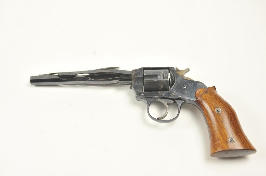 Hopkins & Allen Range Model DA revolver, .38 caliber, Serial #NSNV. The pistol has been made inoperable by a blown barrel and is sold as parts only. Est.: $50-$100.