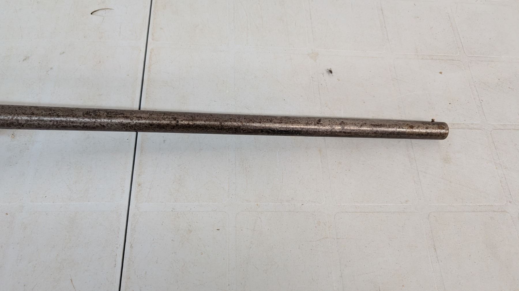 break action single shot. No retained finish. Action is smooth. Bore is shiny and smooth. Stocks are in poor condition with cracks and repairs. missing butt plate.