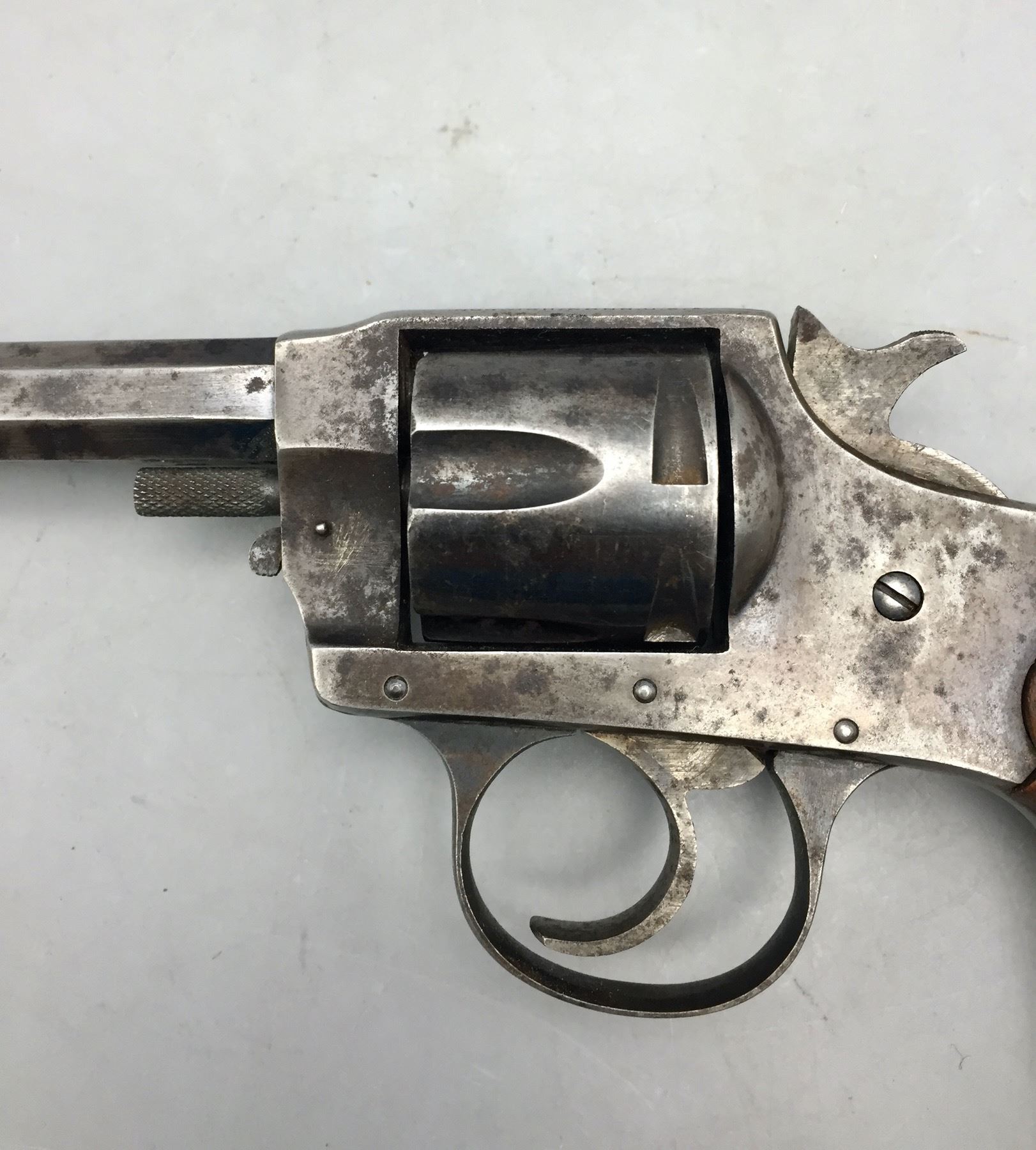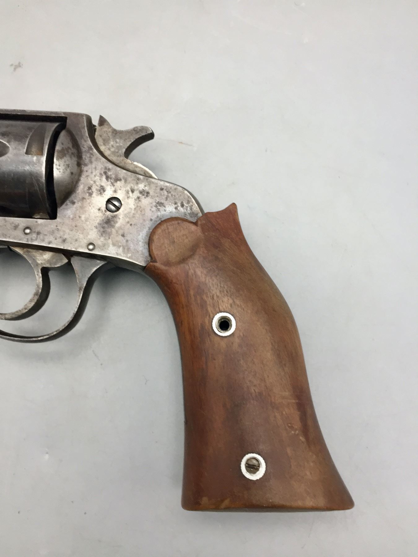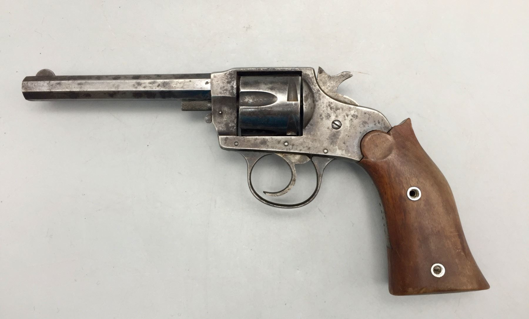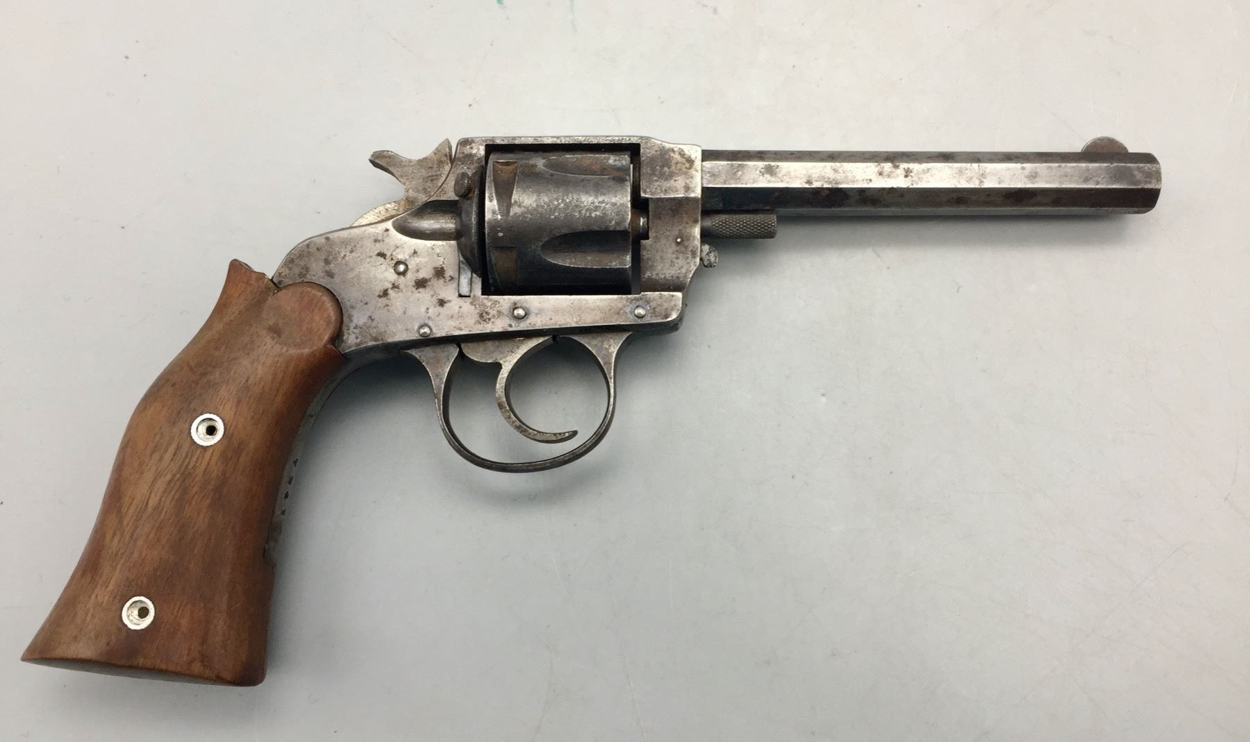 Description: Offered for sale in this lot is an Hopkins and Allen Arms Co., Range Model revolver. Appears to be about a .32 caliber. Maker: Hopkins and Allen Arms Co. Approx. Age: Early 1900s. Serial No. 7341. Size: Barrel measures 4-1/2†with an overall length of 10-1/2â€. Condition: Pretty good for its age, normal wear expected. Missing one grip screw. Please look closely at the pictures - they are an important part of our description. Shipping: There will be a $15 handling / packaging fee for shipping this lot. The actual cost of postage will be added on top of that. *****This firearm REQUIRES an FFL Transfer*****