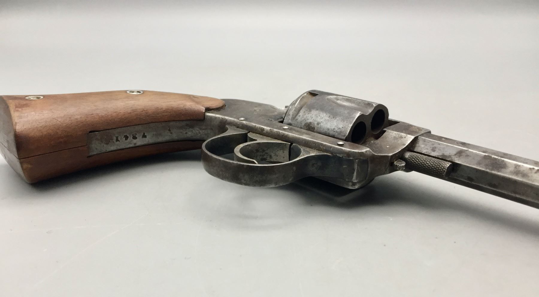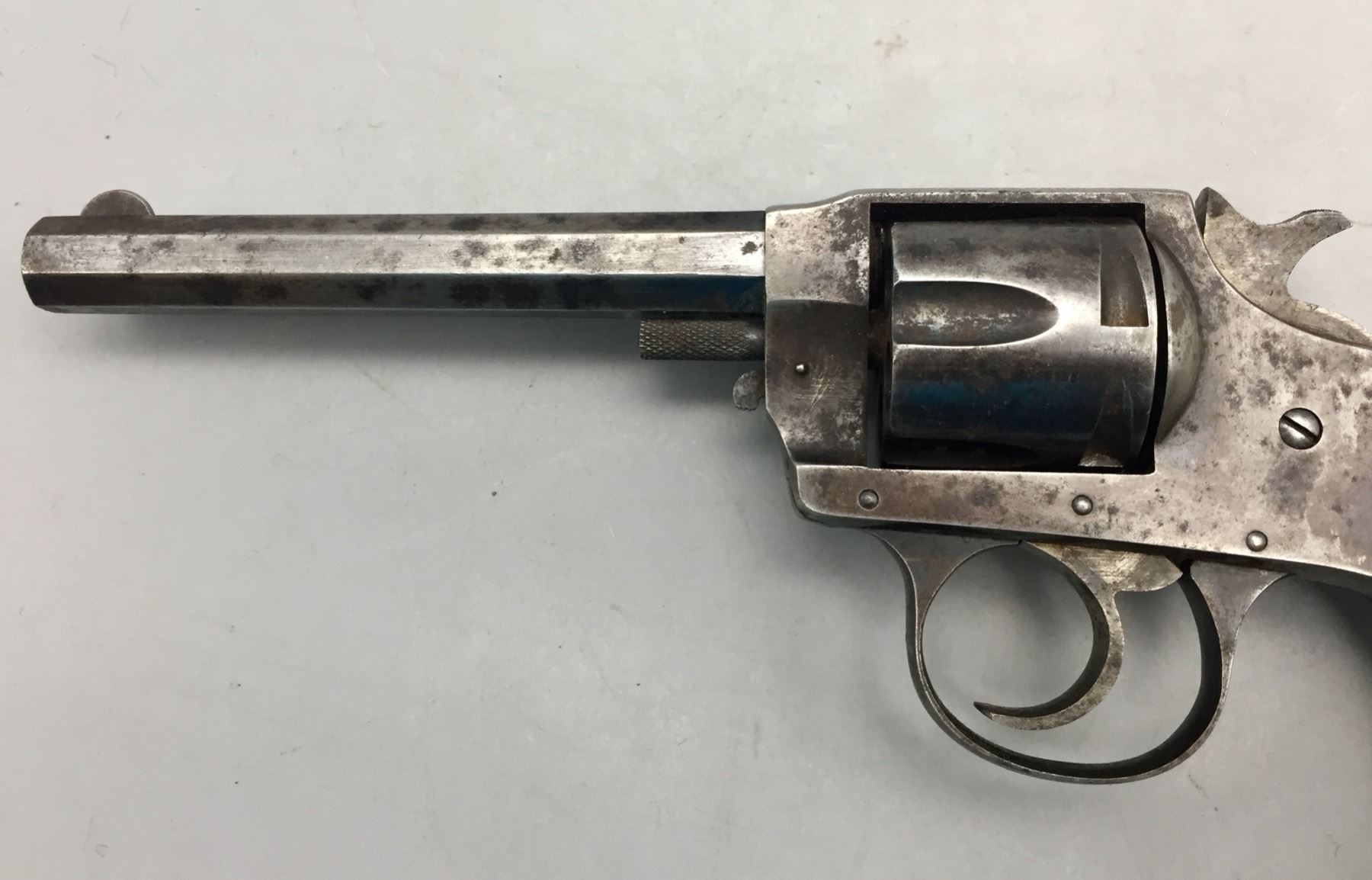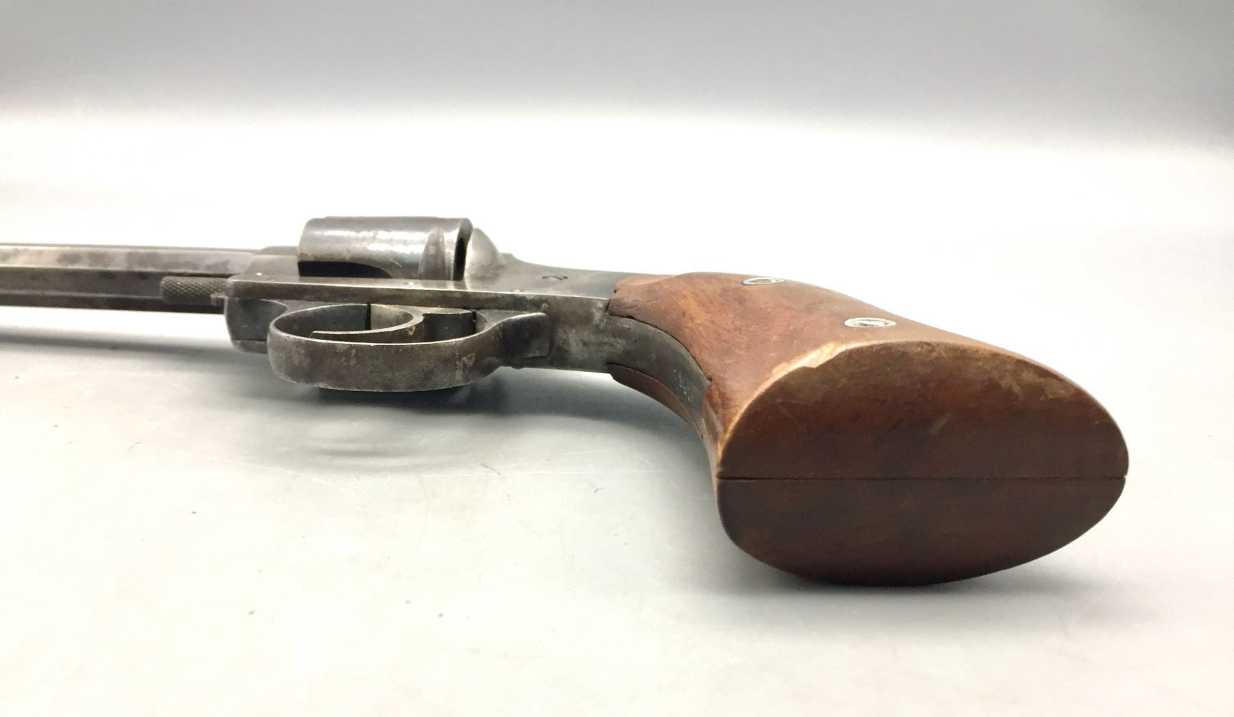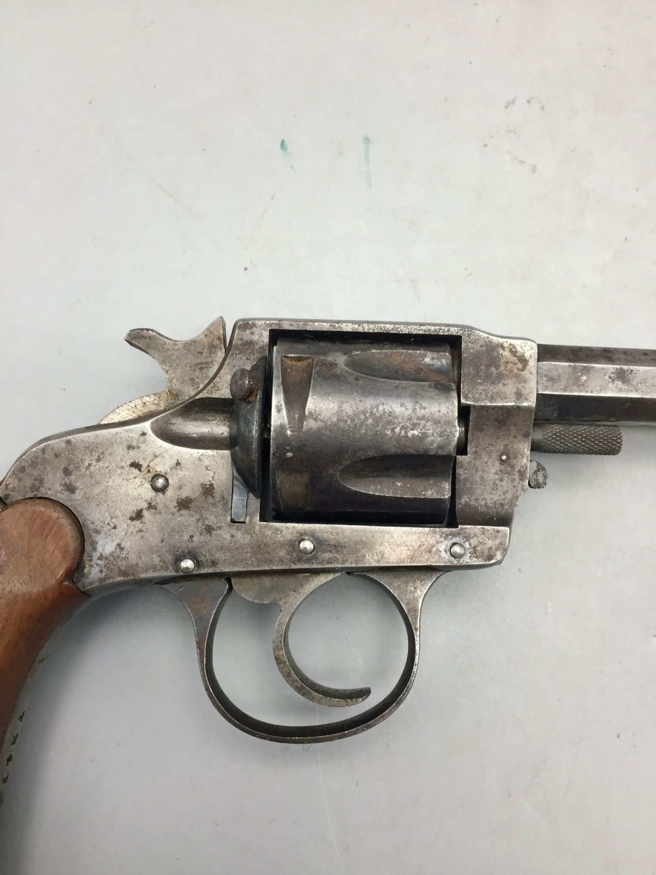 Description: Offered for sale in this lot is an Hopkins and Allen Arms Co., Range Model revolver. Appears to be about a .32 caliber. Maker: Hopkins and Allen Arms Co. Approx. Age: Early 1900s. Serial No. 7341. Size: Barrel measures 4-1/2†with an overall length of 10-1/2â€. Condition: Pretty good for its age, normal wear expected. Missing one grip screw. Please look closely at the pictures - they are an important part of our description. Shipping: There will be a $15 handling / packaging fee for shipping this lot. The actual cost of postage will be added on top of that. *****This firearm REQUIRES an FFL Transfer*****