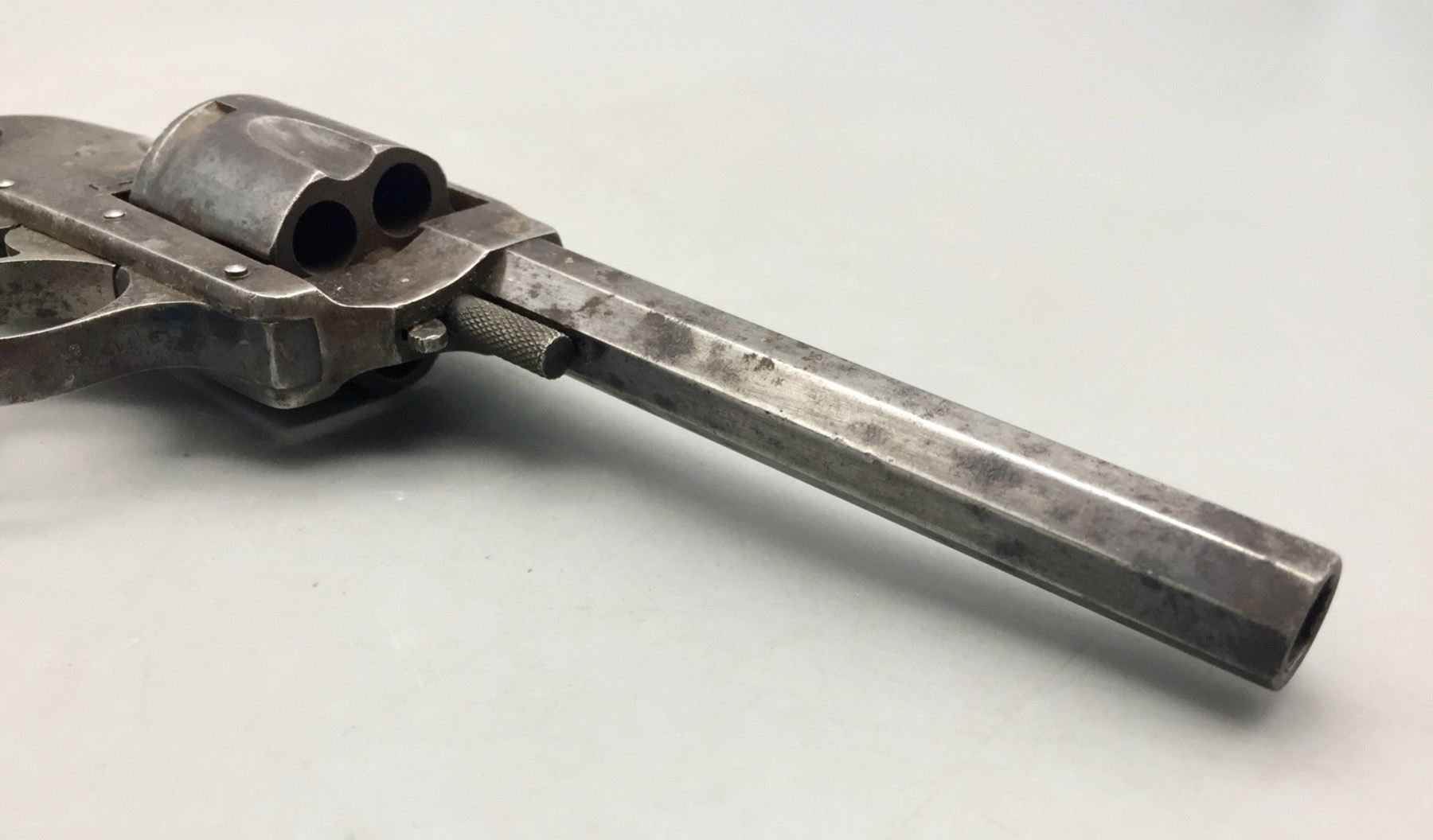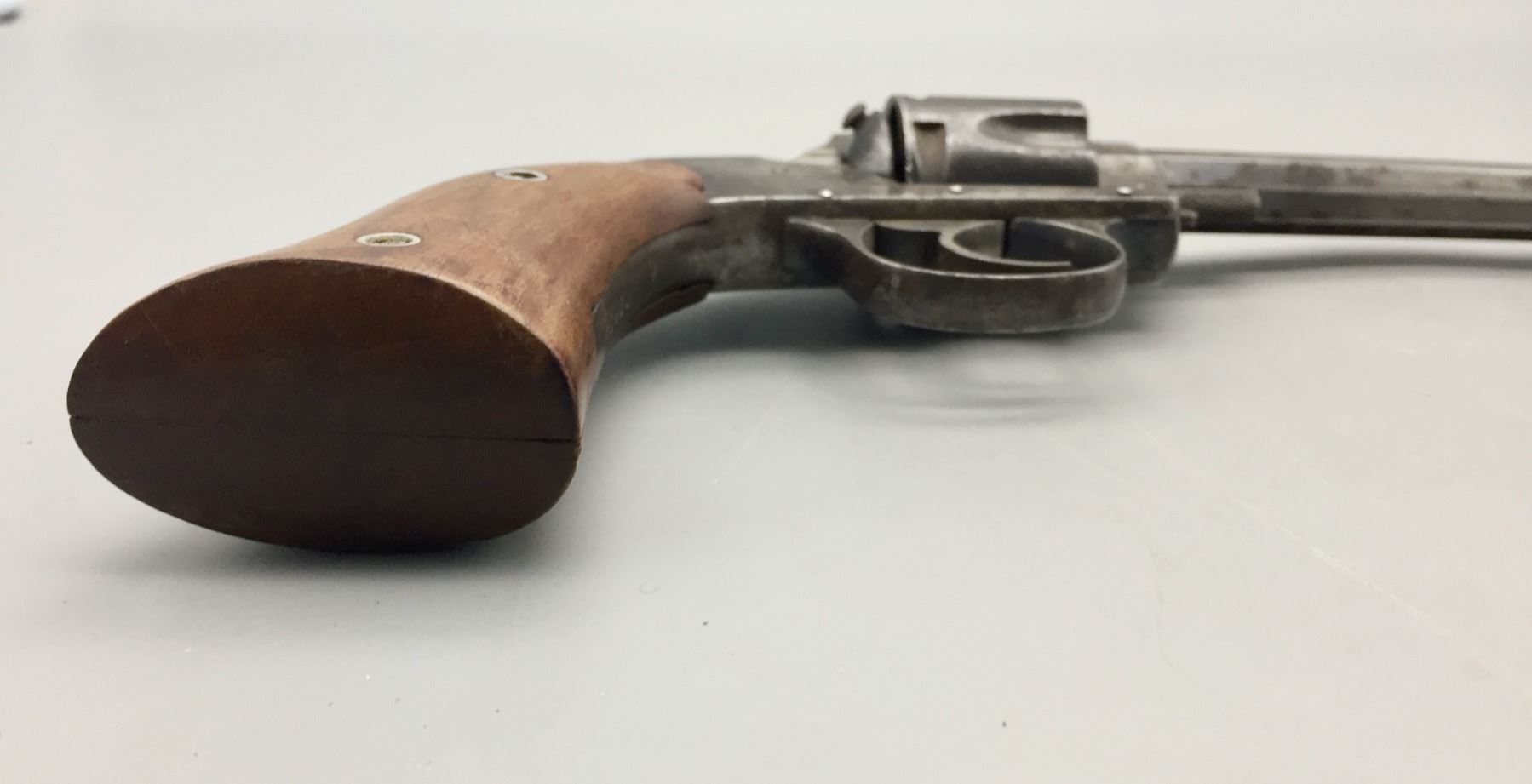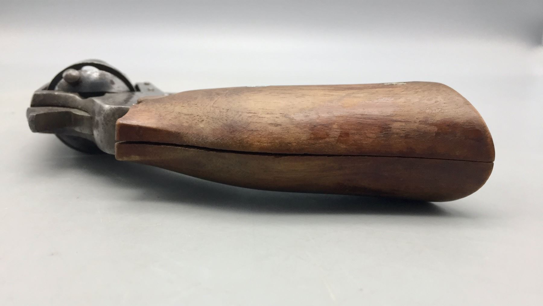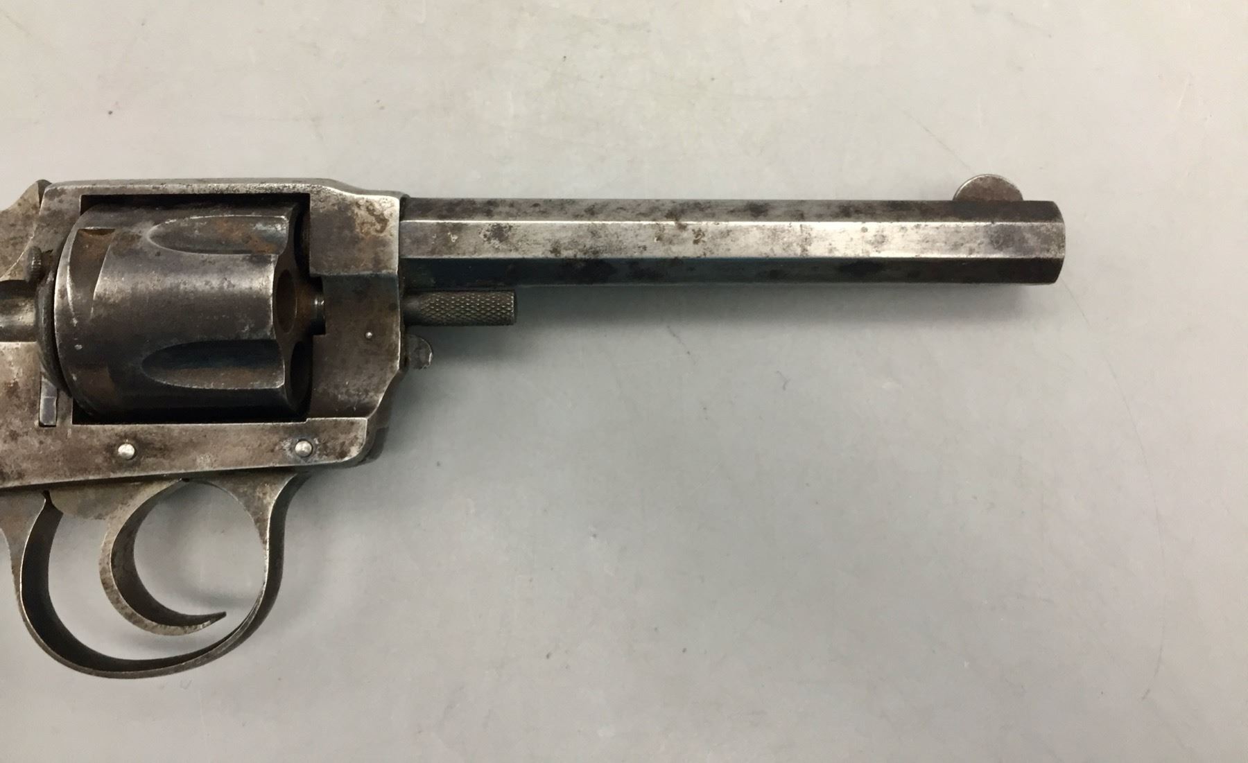 Description: Offered for sale in this lot is an Hopkins and Allen Arms Co., Range Model revolver. Appears to be about a .32 caliber. Maker: Hopkins and Allen Arms Co. Approx. Age: Early 1900s. Serial No. 7341. Size: Barrel measures 4-1/2†with an overall length of 10-1/2â€. Condition: Pretty good for its age, normal wear expected. Missing one grip screw. Please look closely at the pictures - they are an important part of our description. Shipping: There will be a $15 handling / packaging fee for shipping this lot. The actual cost of postage will be added on top of that. *****This firearm REQUIRES an FFL Transfer*****
