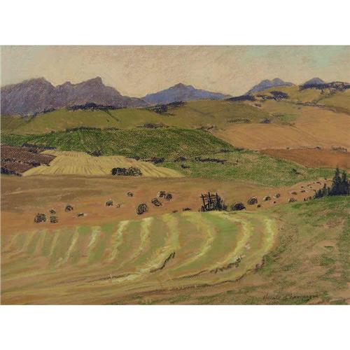 Canadian PSA, PSC [b. 1937] OLD WAGON NEAR COCHRANE; 1982 pastel on paper 18 x 24 in. (45.7 x 61 cm) signed, titled & dated