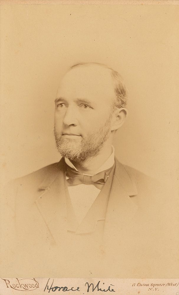 Journalist and financial expert (1834–1916) who at one time was editor-in-chief and part-owner of the Chicago Tribune. Original 4 x 6.5 cabinet photo by Rockwood of New York, signed in the lower border in black ink. Mild silvering to dark areas of the image and trimmed edges, otherwise fine condition.