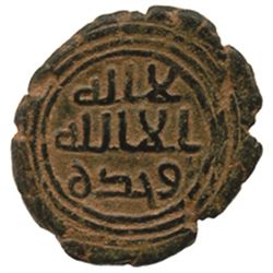 UMAYYAD: Anonymous, ca. 735-745, AE fals (3.19g), Madinat Ma'dan Amir al-Mu'minin, ND, A-A183, W-349, Fine to VF, RR. The mint was probab...