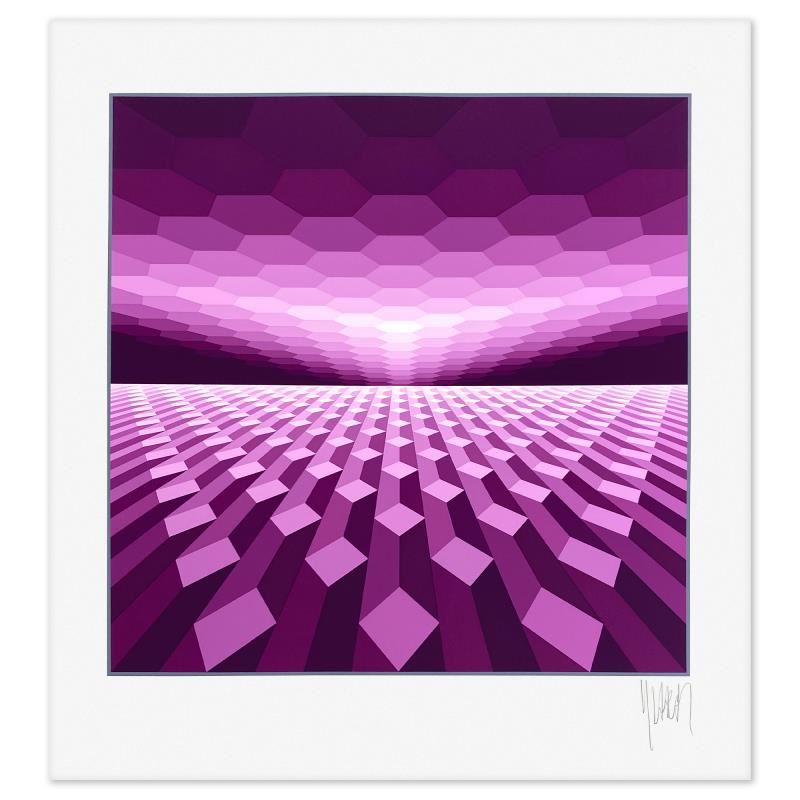 "Horizon II" is a limited edition serigraph on paper by Yvaral, numbered and hand signed with a Letter of Authenticity. Measures approx. 25" x 23.5" (border), 19" x 19" (image).