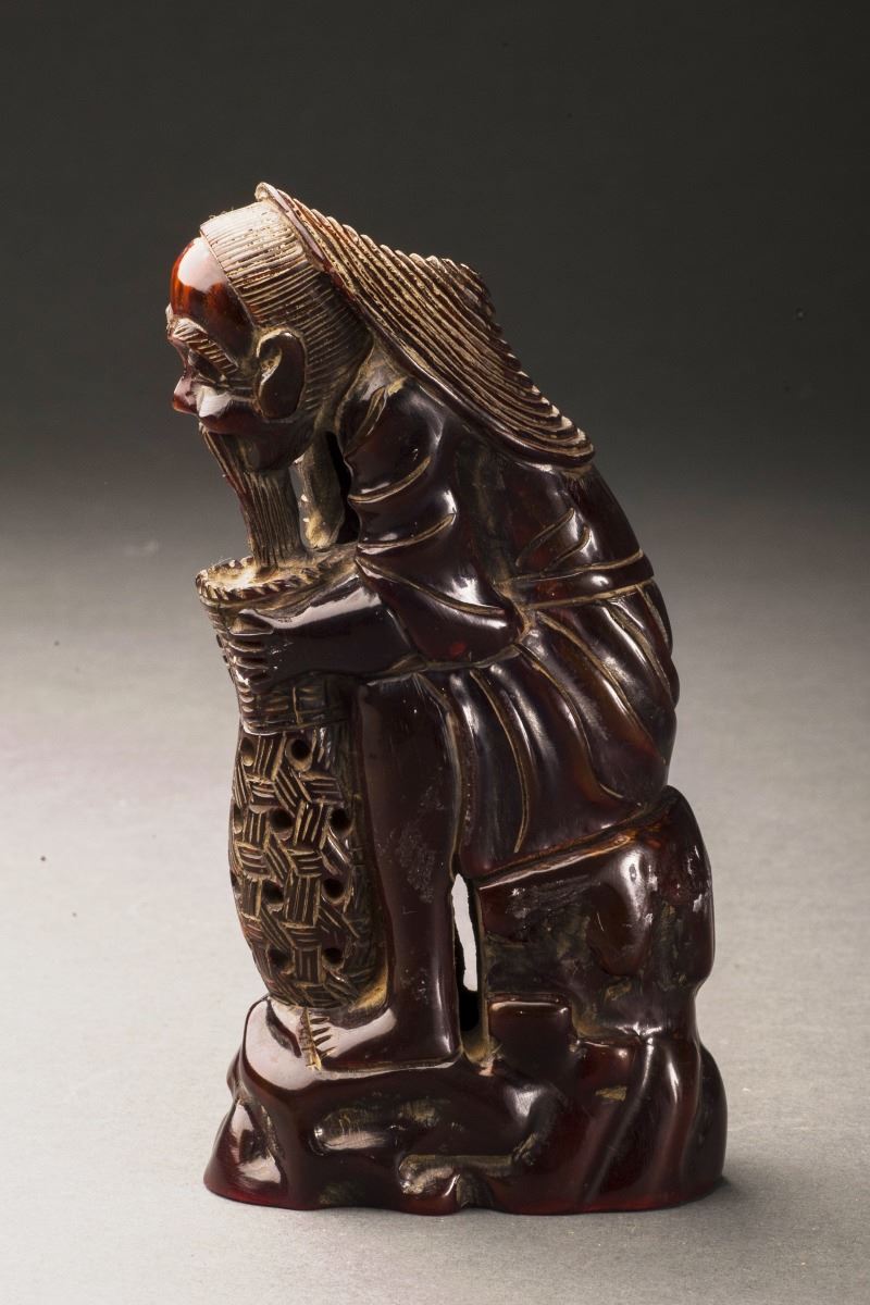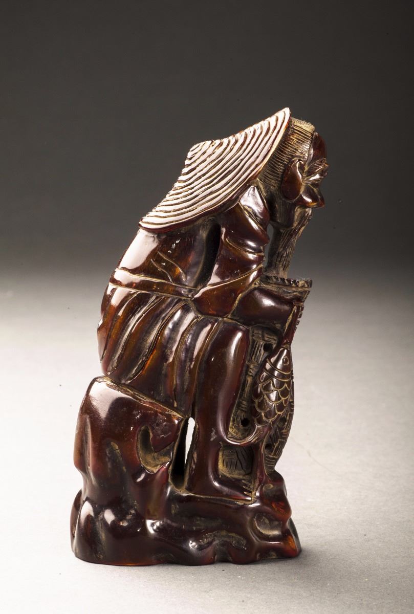 A Fine Statue Made Of Fine Ox Horn, The Old Man Standing And Dressed In The Long Lobe, Carved In Extremely Detailed And Face Vividly Expressed.