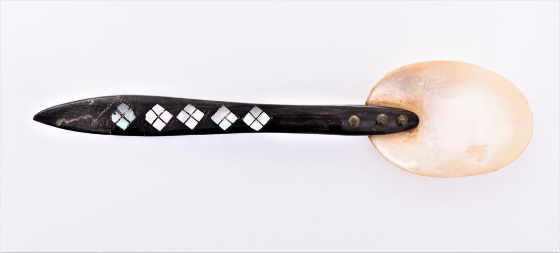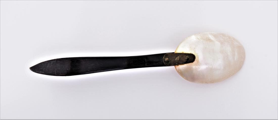 Horn and Mother of Pearl Inlaid Spoon. Estimated more than 75 yrs old. African art is a term typically used for the art of Sub-Saharan Africa. A few of the most popular traditional African art was produced by the tribal people of the Fang, Dan, Baoule, Dogon, Senoufo, Makonde, Bambara, and San. Most African sculpture was historically in wood and other natural materials that have not survived from earlier than a few centuries ago; older pottery figures can be found from a number of areas. Masks are important elements in the art of many peoples, along with human figures, often highly stylized and in vast variety of styles. Sculpture is most common among "groups of settled cultivators in the areas drained by the Niger and Congo rivers. Direct images of deities are relatively infrequent, but masks in particular were made for religious ceremonies. Later West African cultures developed bronze casting for reliefs, like the Benin Bronzes, to decorate palaces and for highly naturalistic royal heads from around the Yoruba town of Ife, in terracotta as well as metal, from the 12th to 14th centuries. Akan gold weights are a form of small metal sculptures produced over the period 1400–1900; some apparently represent proverbs, contributing a narrative element rare in African sculpture; and royal regalia included impressive gold sculptured elements. Many West African figures are used in religious rituals and are often coated with materials placed on them for ceremonial offerings. Eastern Africans, in many areas shorter of large timber to carve, are known for Tinga Tinga paintings and Makonde sculptures. There is also tradition of producing textile art. Modern Zimbabwean sculptors in soapstone have achieved considerable international success. Southern Africa's oldest known clay figures date from 400 to 600 AD and have cylindrical heads with a mixture of human and animal features. (Wikipedia) Size and/or Weight: See Measurement Photo. (Photos Represent The Lot Condition. Read T&C's)