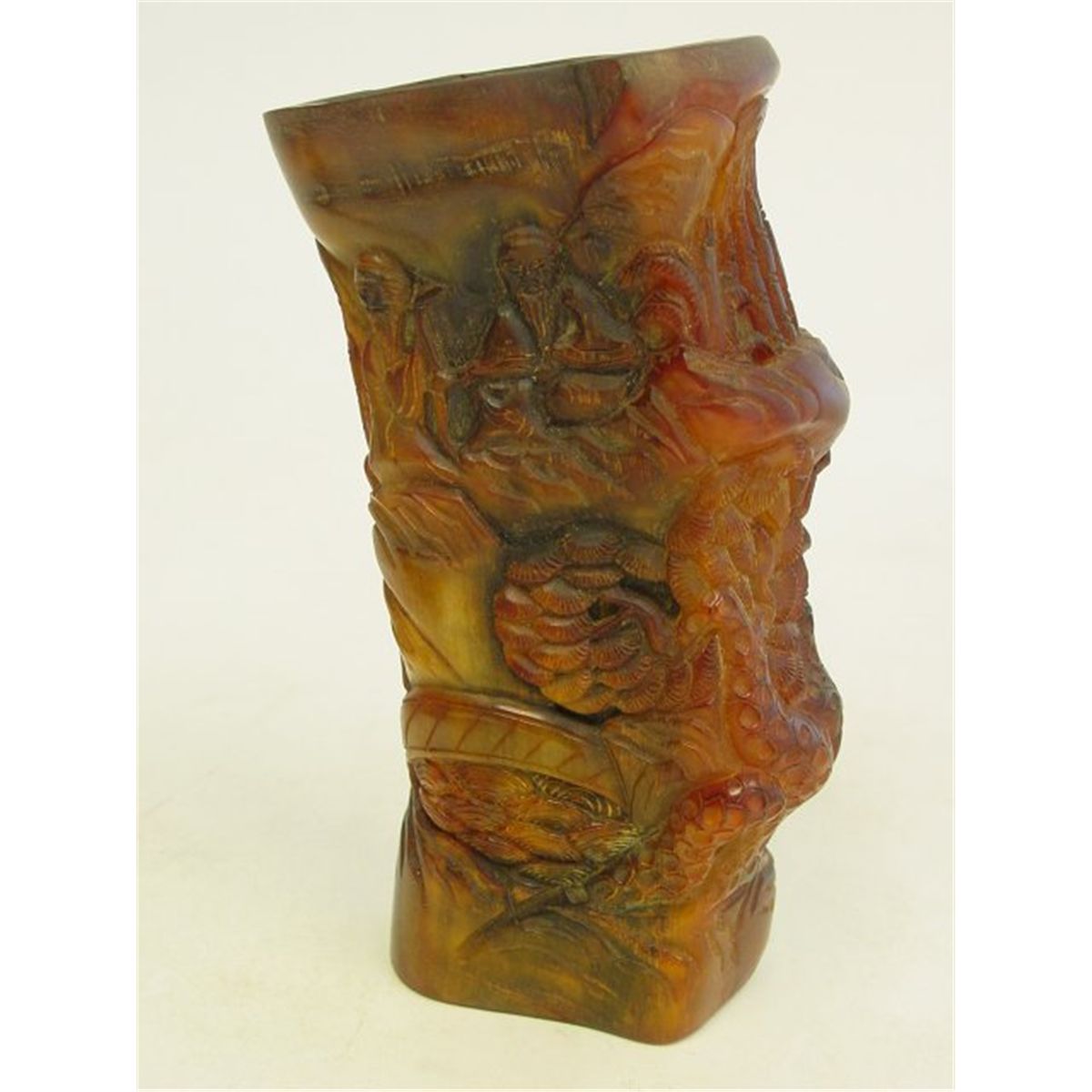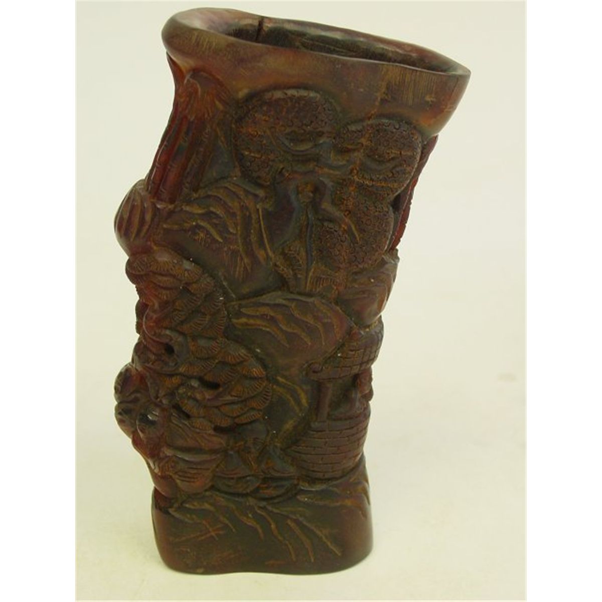 With intricate figural motif carving. Approx. 6.75" H Please read our terms of sale.