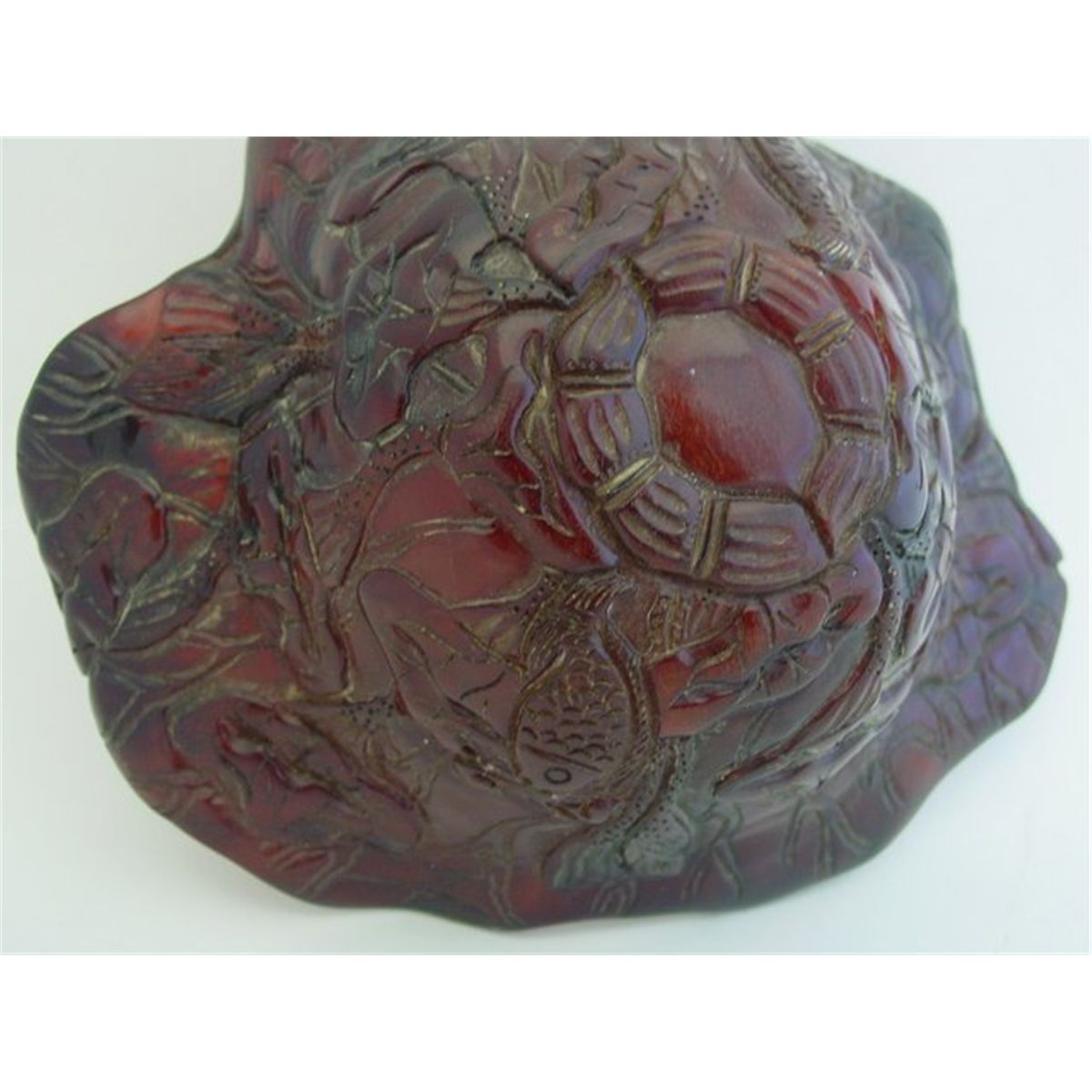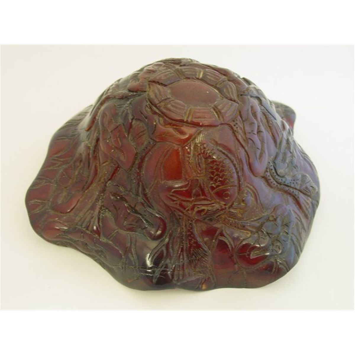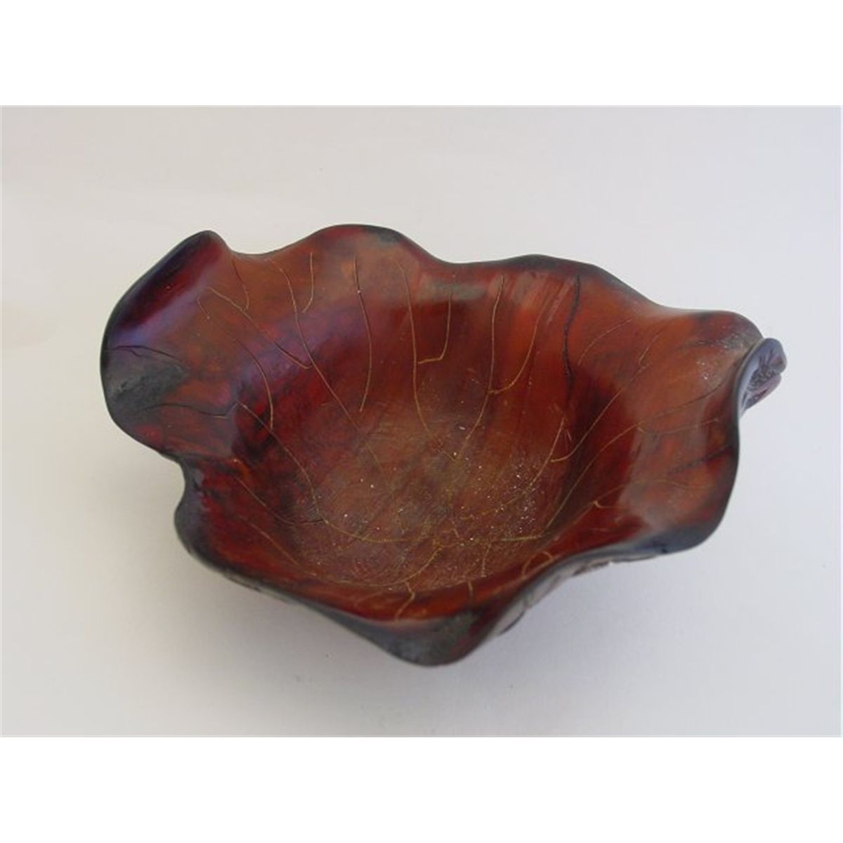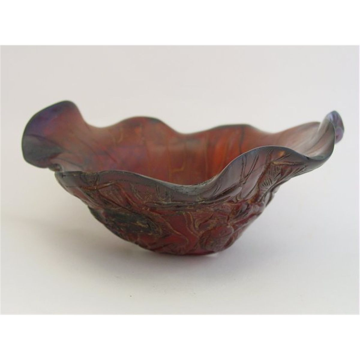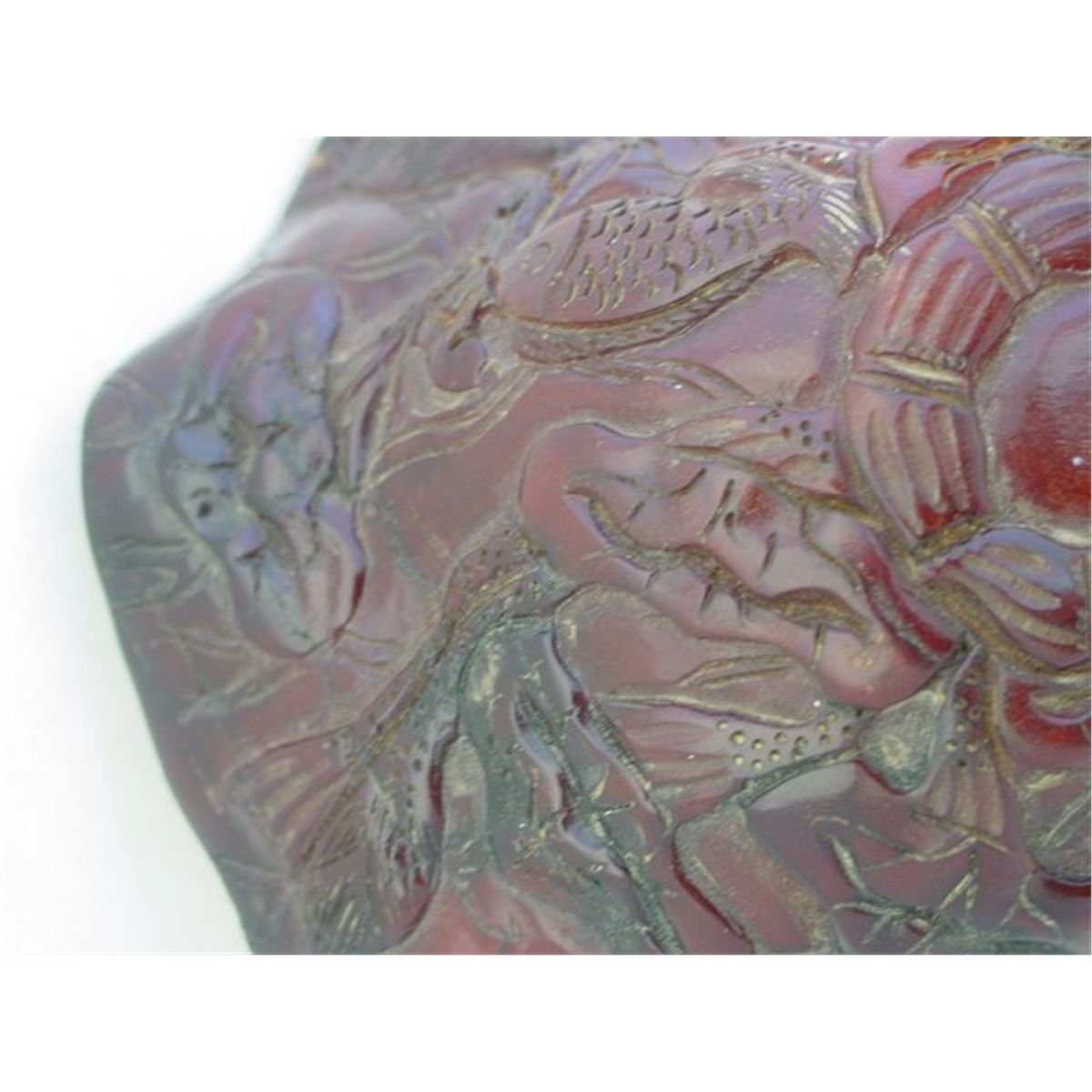 With a leaf shaped opening & intricate carving. Approx. 2.75" H x 6" W Please read our terms of sale.
