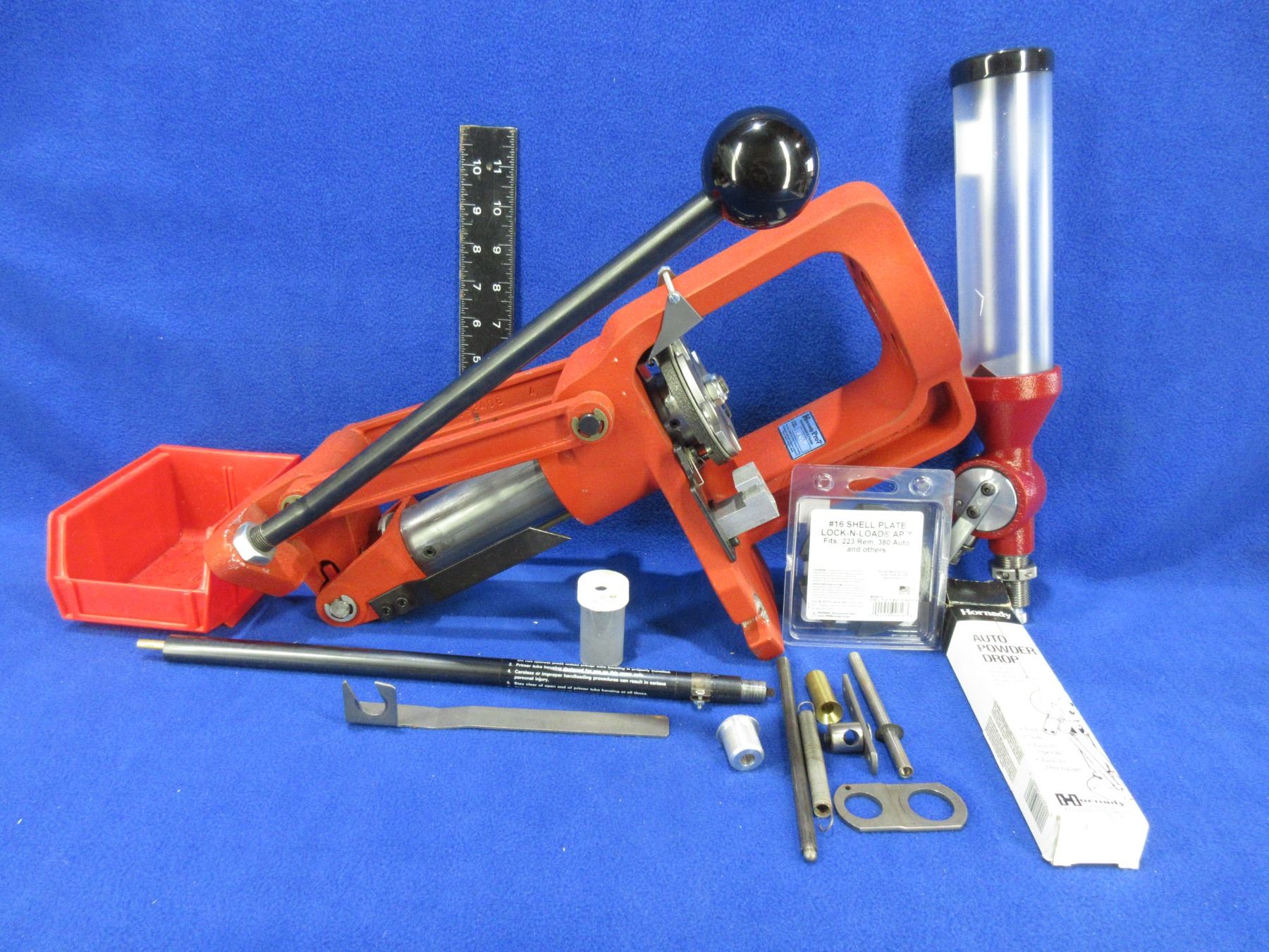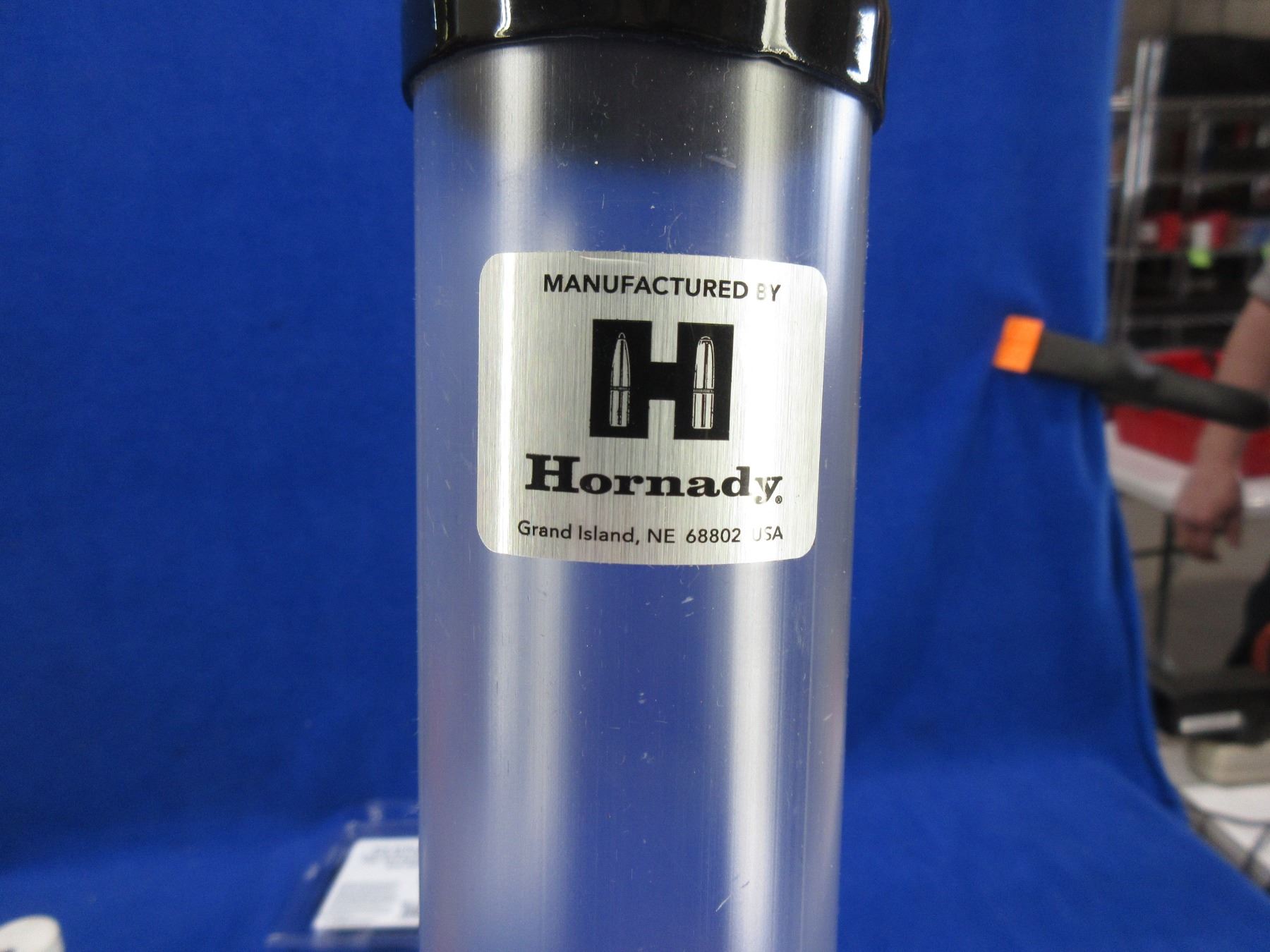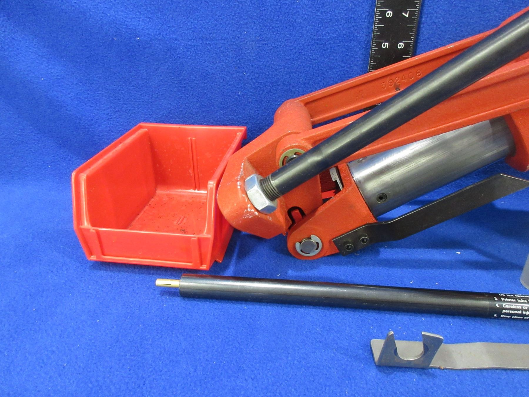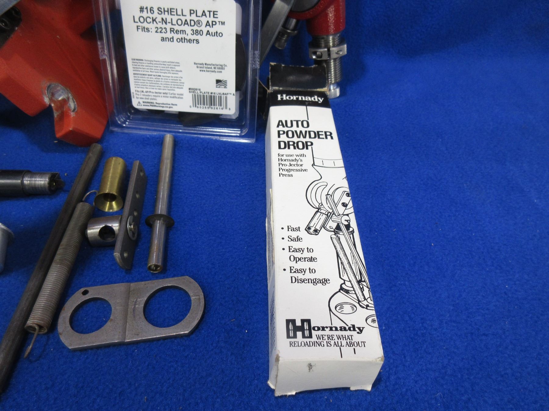 Hornady Pro-jector Progressive Reloading Press with Shell Plates # 16 (223) and # 6 (357), Powder Measure and Primer Tube - Powder measure has small crack in plastic tube