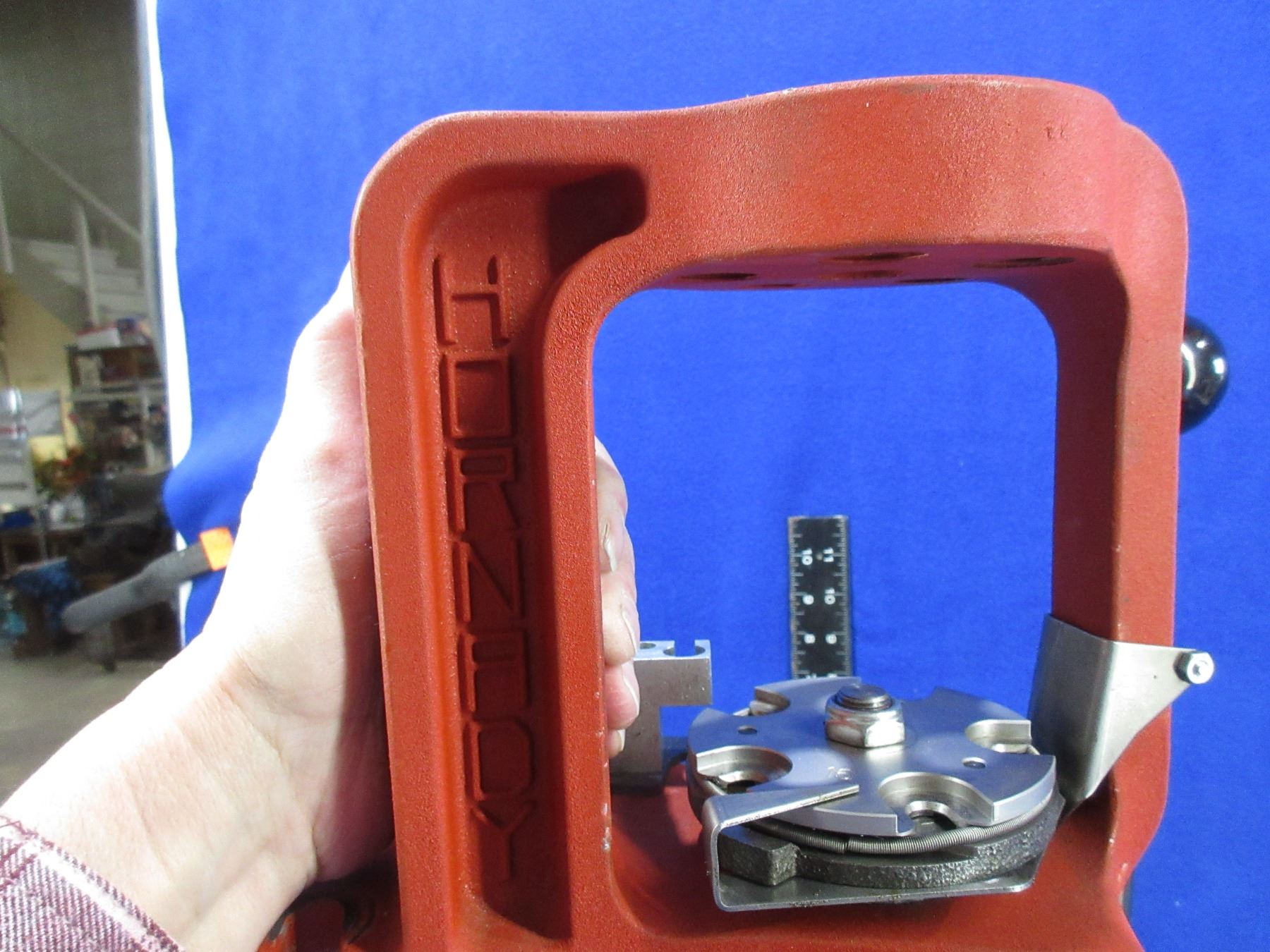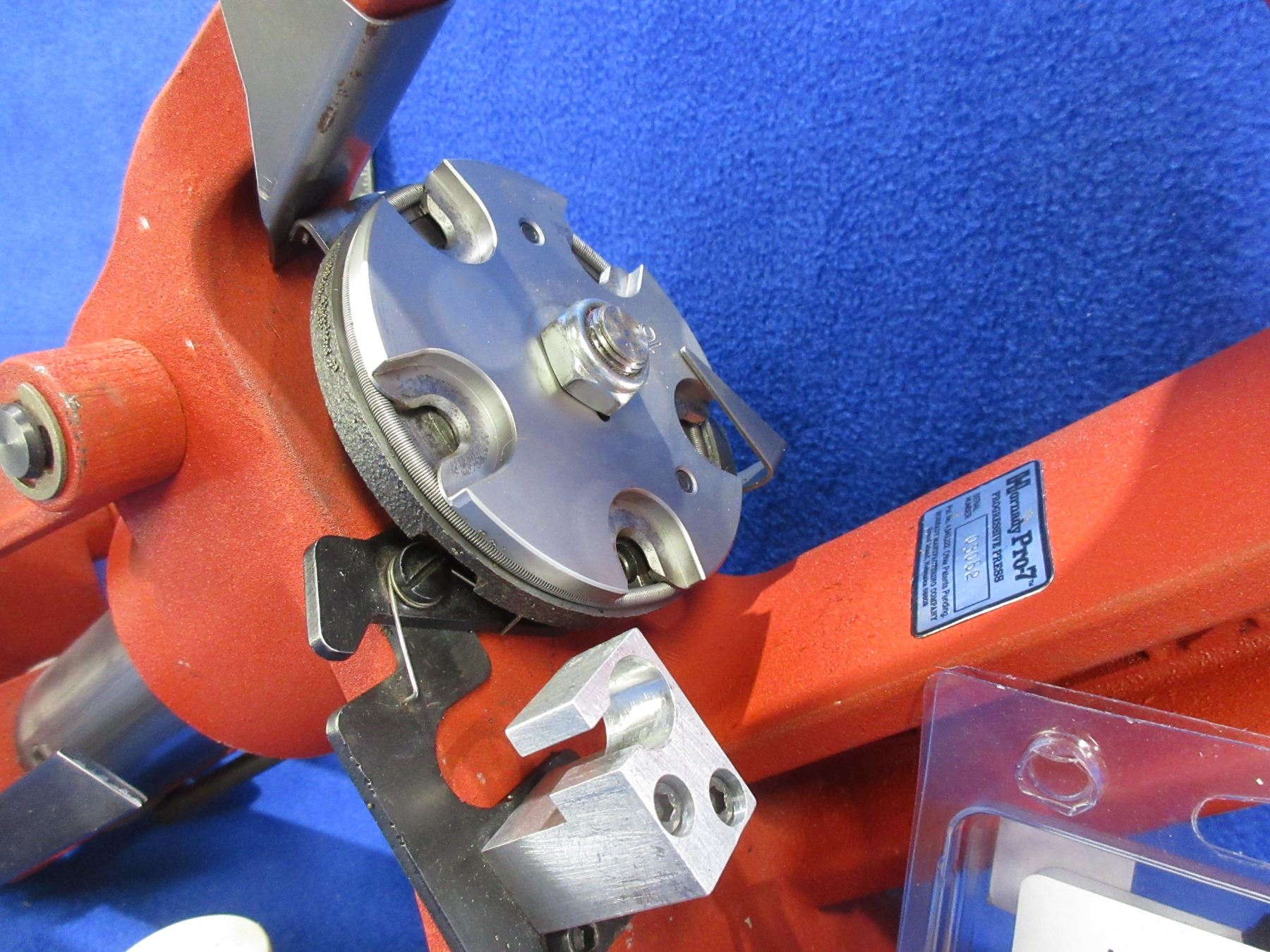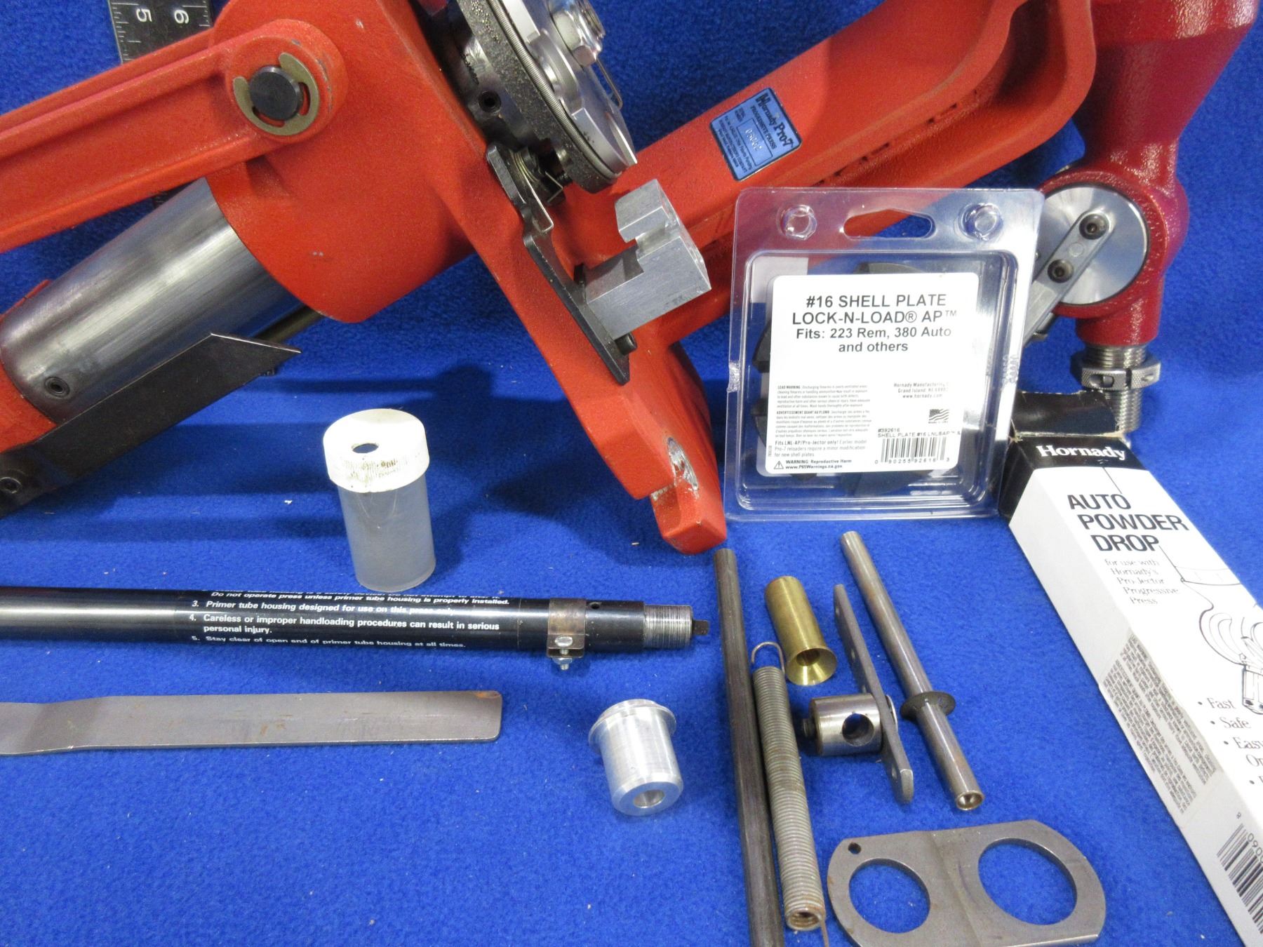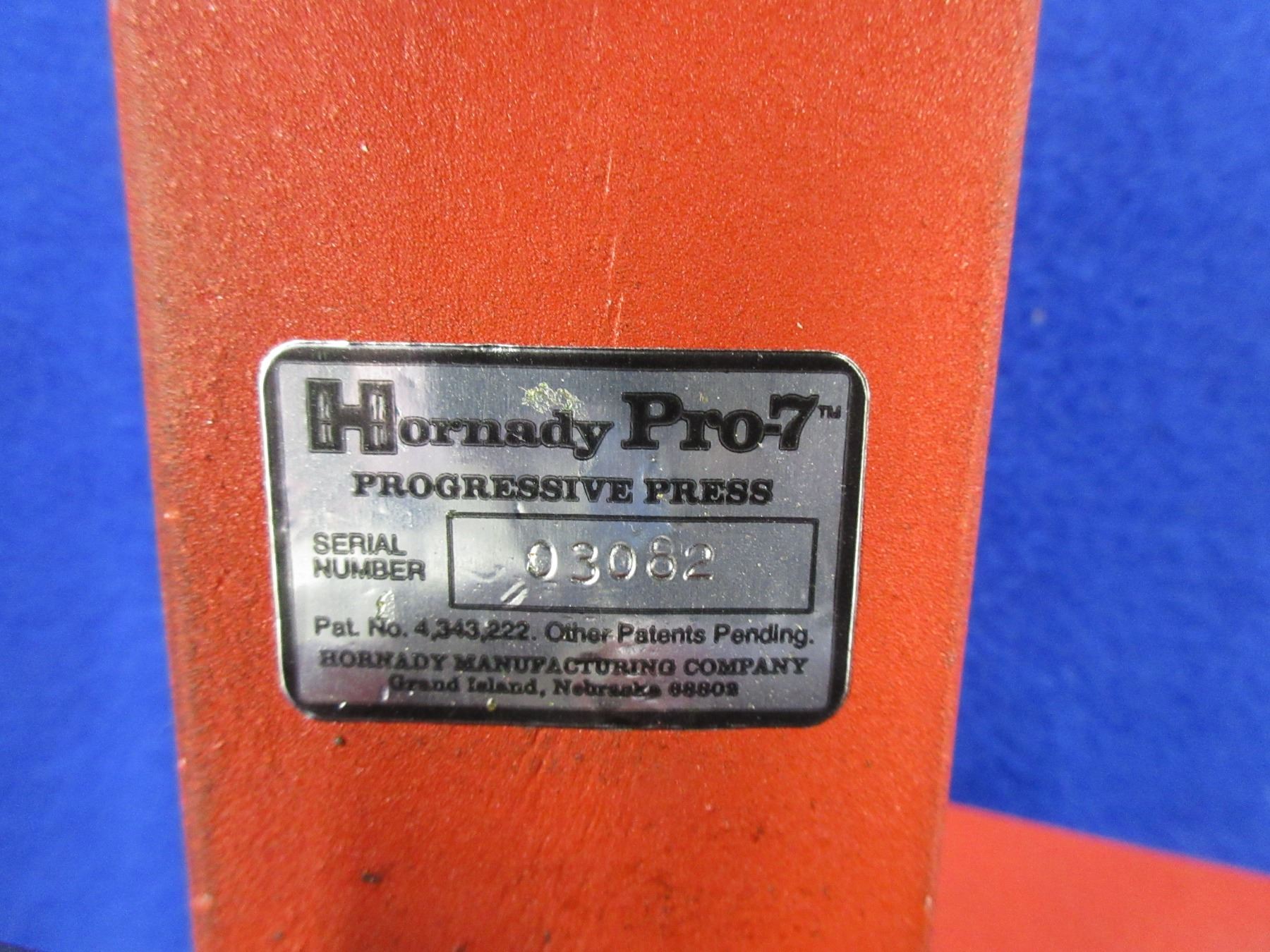 Hornady Pro-jector Progressive Reloading Press with Shell Plates # 16 (223) and # 6 (357), Powder Measure and Primer Tube - Powder measure has small crack in plastic tube
